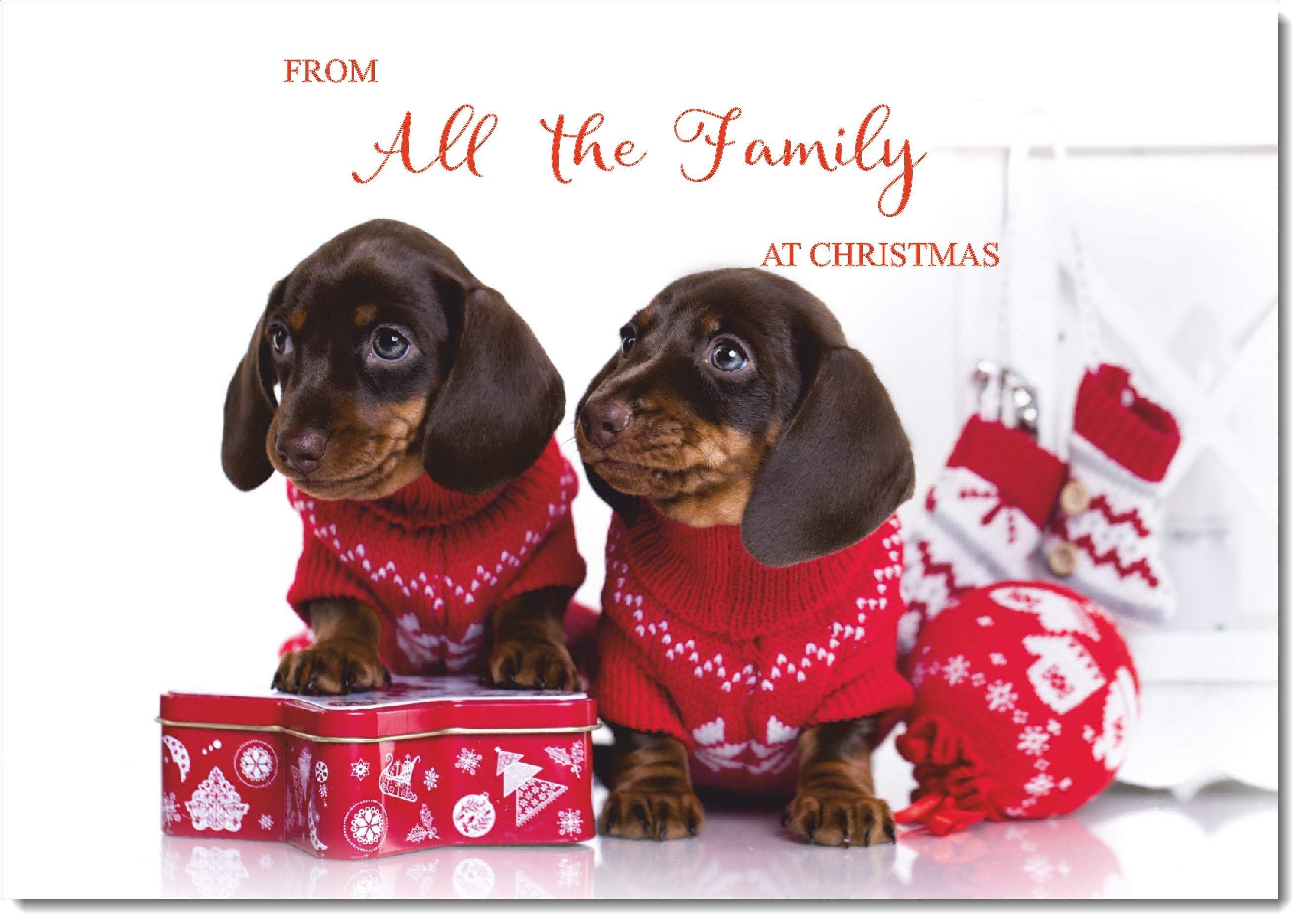 From All The Family Christmas Card Dachshund Puppies in Christmas Jumpers