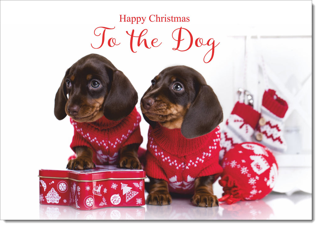 To The Dog Christmas Card Dachshund Puppies in Christmas Jumpers
