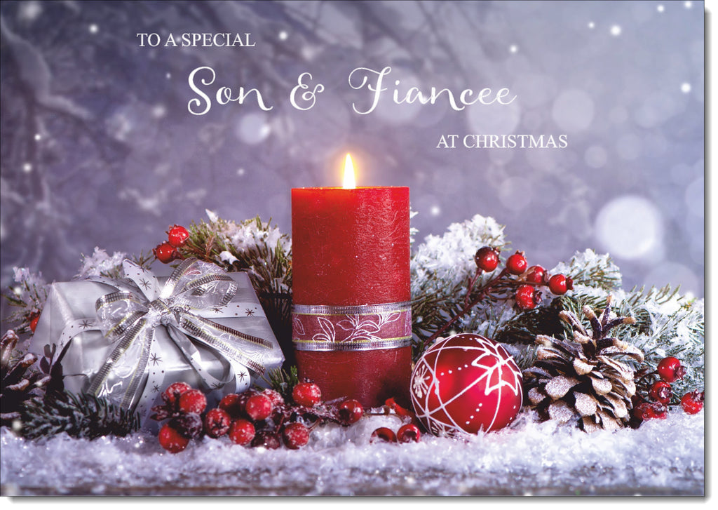 Son & Fiancee Christmas Card Festive Red Candle