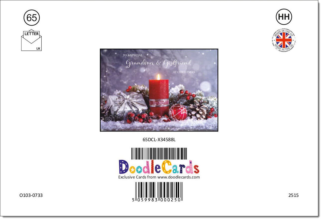 Grandson & Girlfriend Christmas Card Festive Red Candle