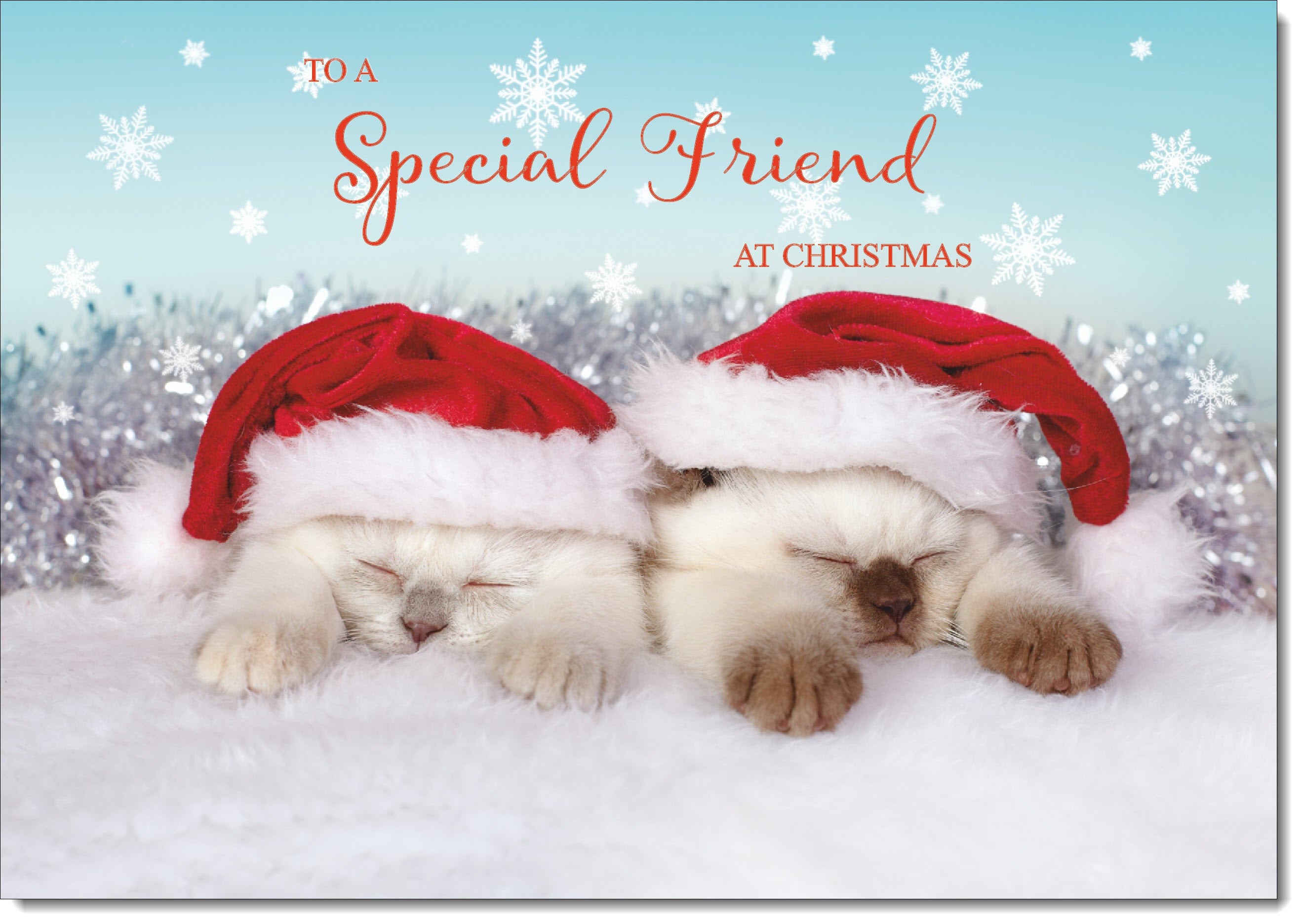 Special Friend Christmas Card Ragdoll Kittens in Santa Hats