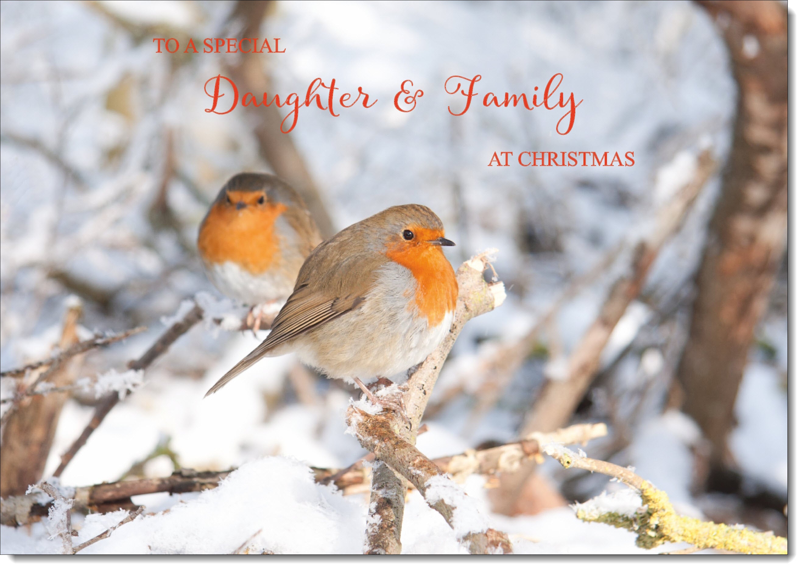Daughter & Family Christmas Card Two Robins in Tree
