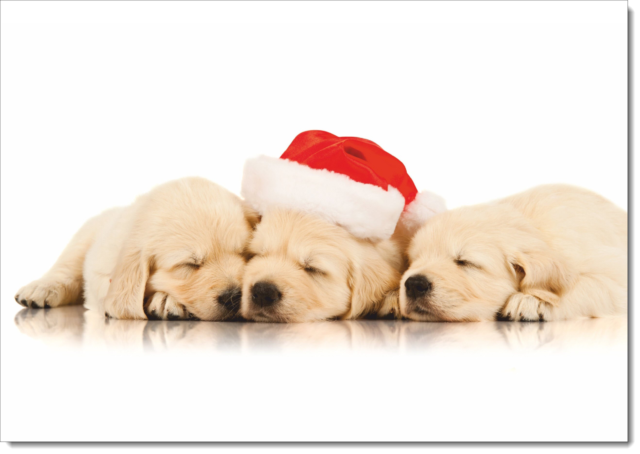Blank Christmas Card Christmas Golden Retriever Puppies