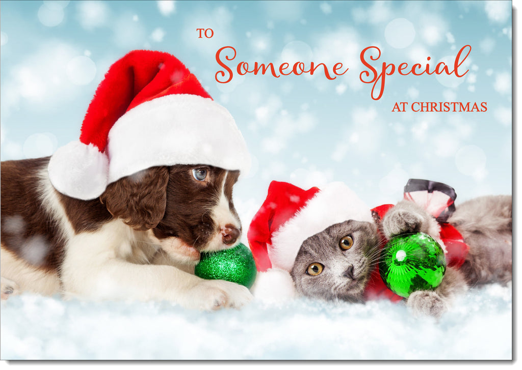 Someone Special Christmas Card Puppy and Kitten with Santa Hats