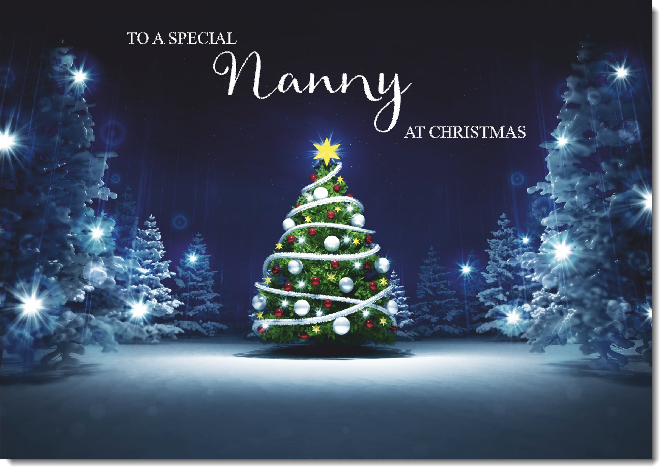 Nanny Christmas Card Christmas Tree Lights in Dark Sky