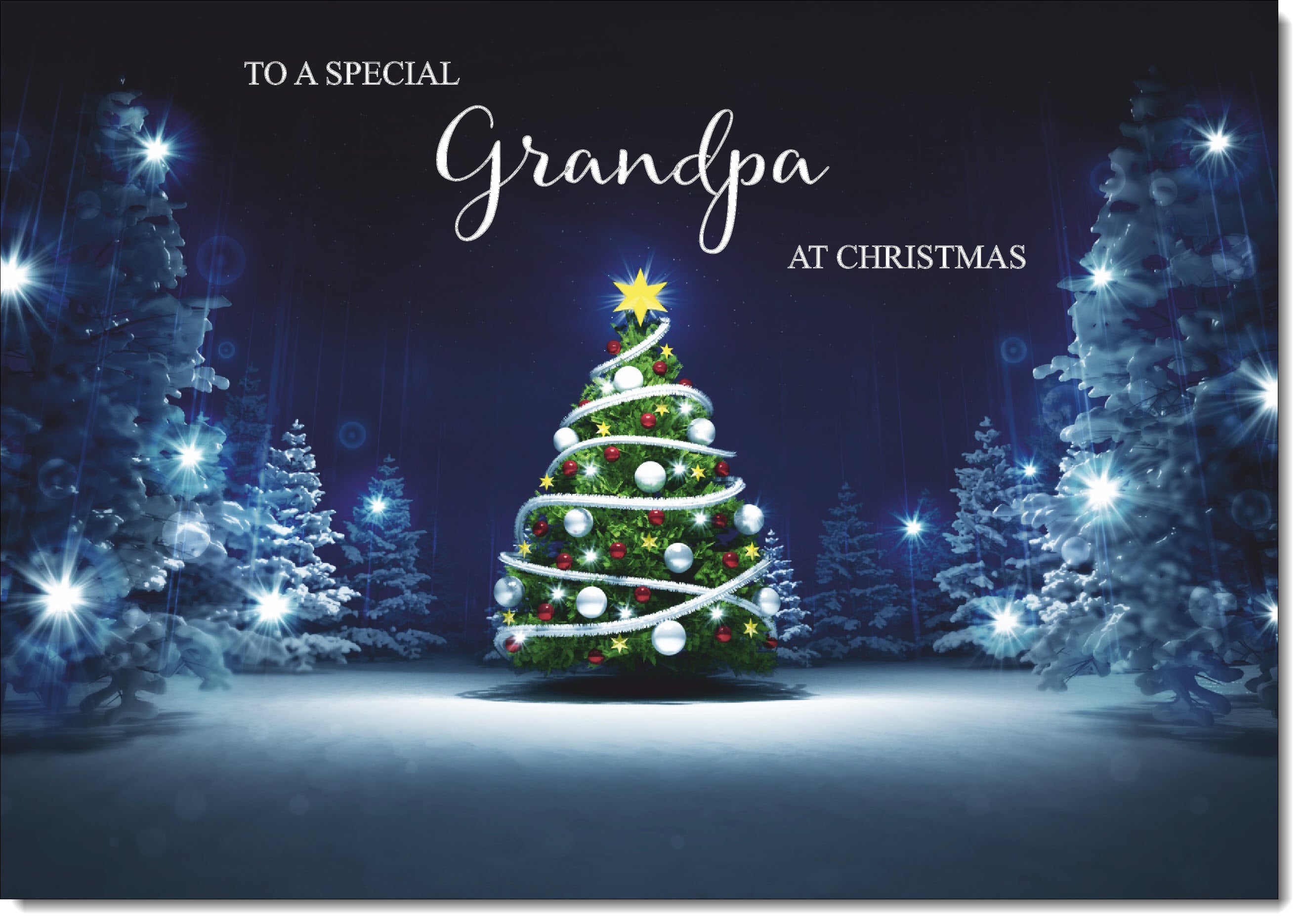 Grandpa Christmas Card Christmas Tree Lights in Dark Sky