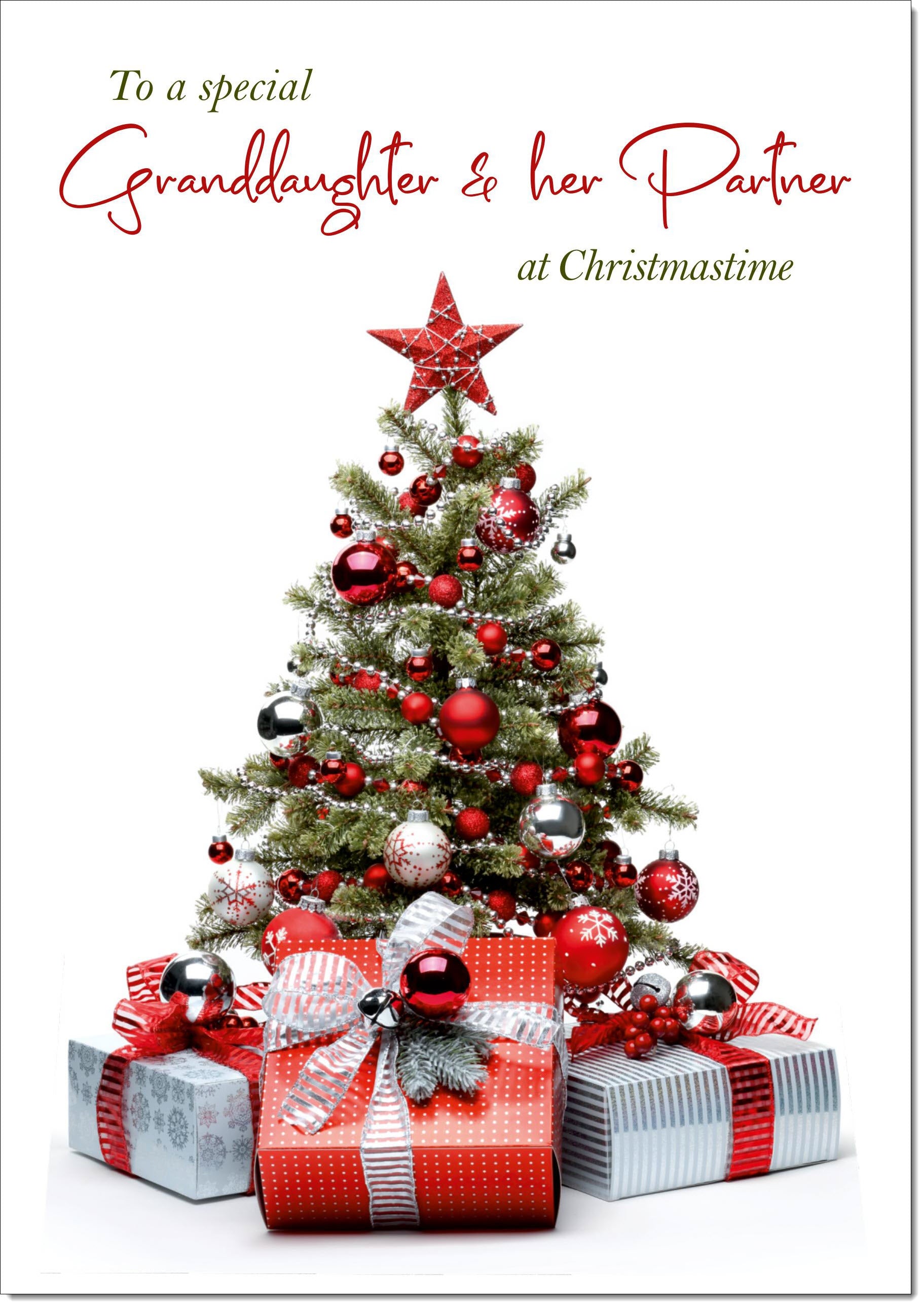 Granddaughter & Partner Christmas Card Christmas Tree and Parcels