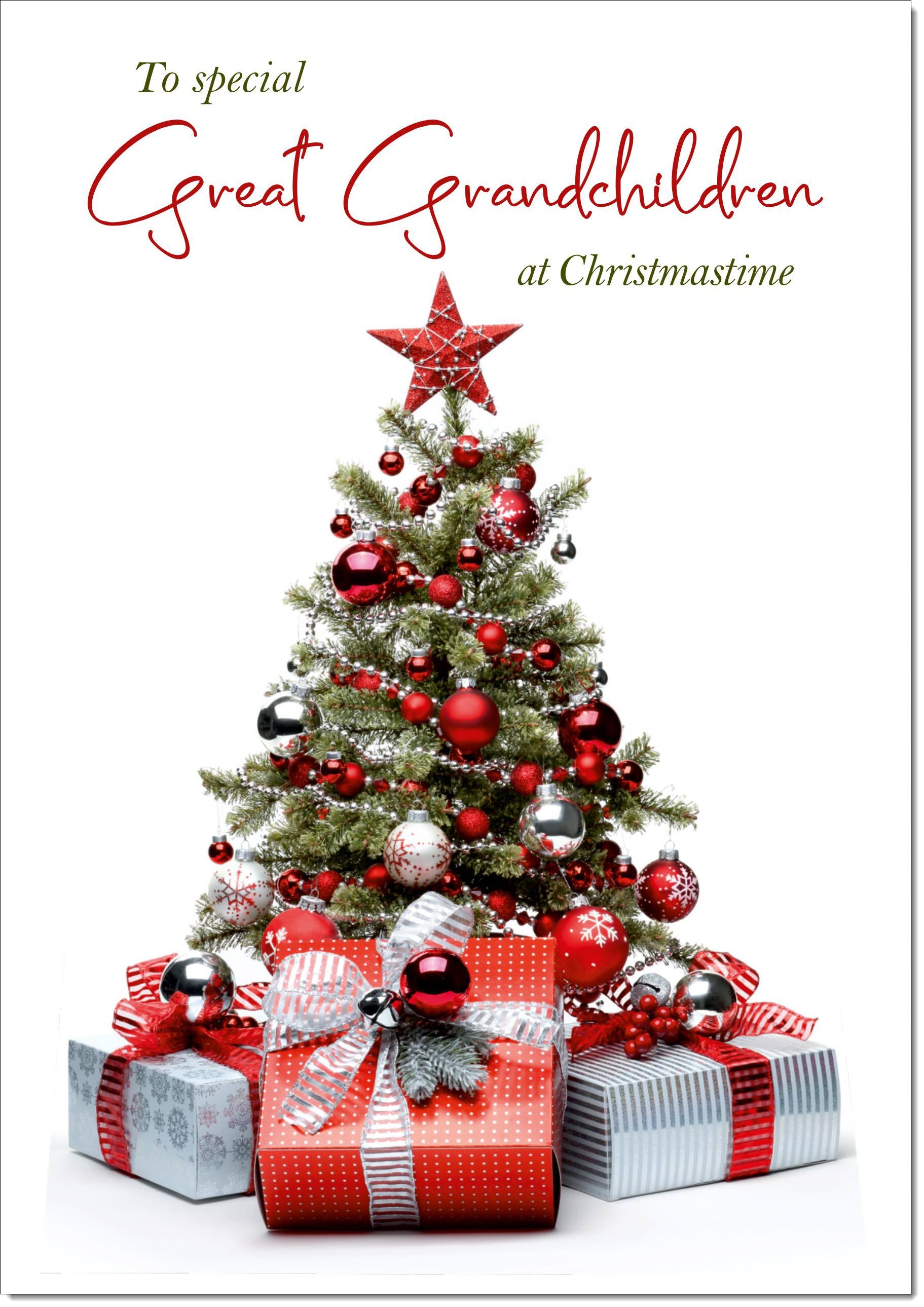 Great Grandchildren Christmas Card Christmas Tree and Parcels
