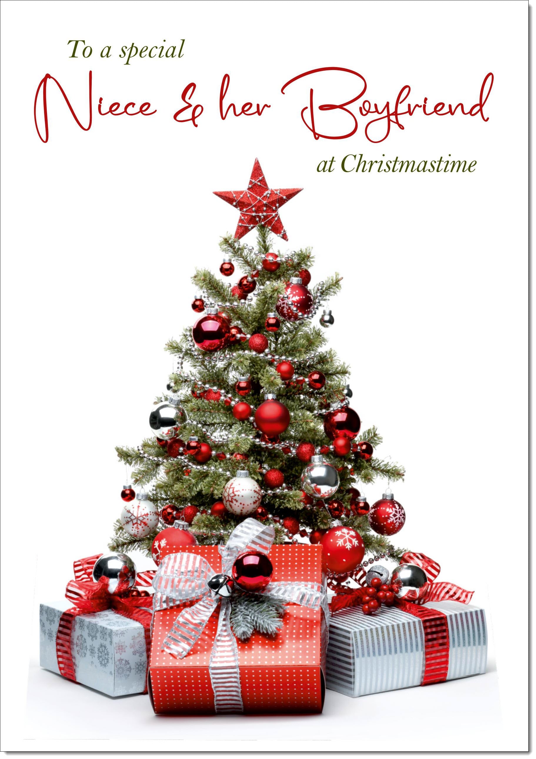 Niece & Boyfriend Christmas Card Christmas Tree and Parcels