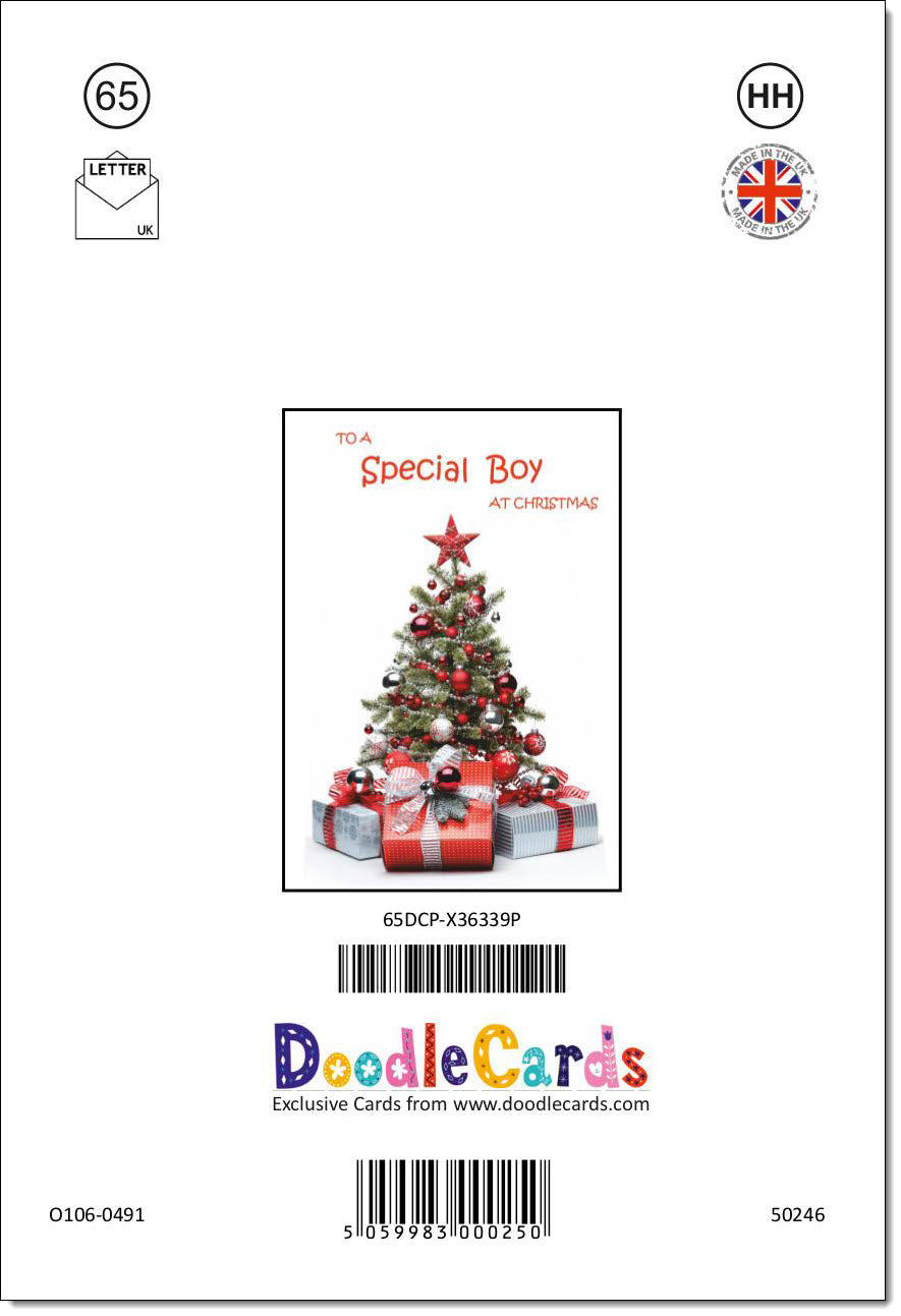 Special Boy Christmas Card Christmas Tree and Parcels