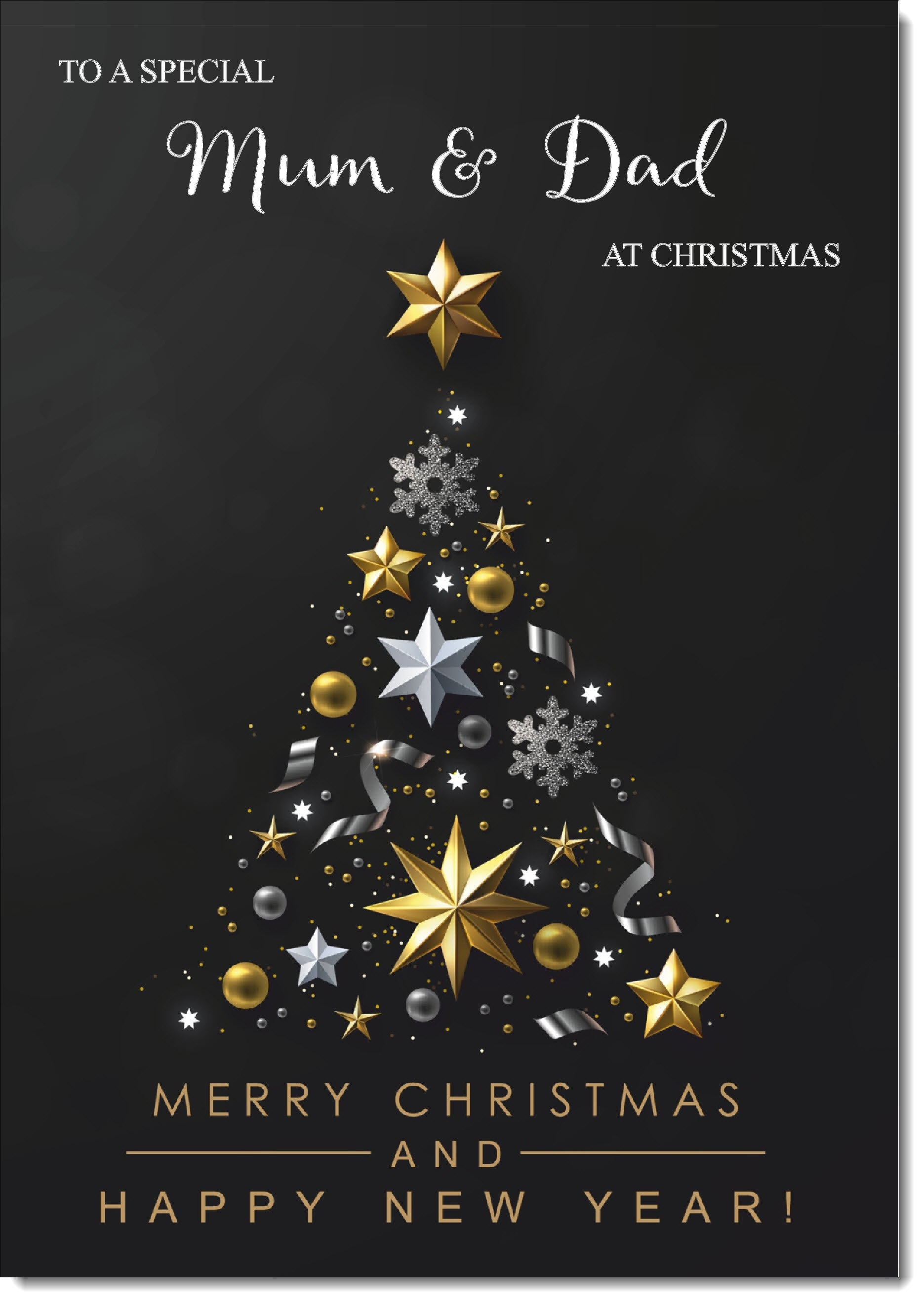 Mum & Dad Christmas Card Black Abstract Christmas Tree