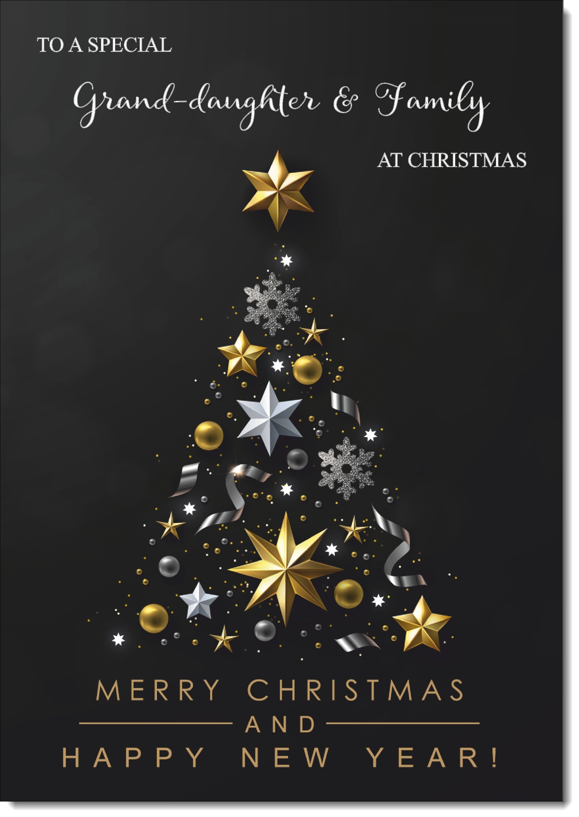 Granddaughter & Family Christmas Card Black Abstract Christmas Tree
