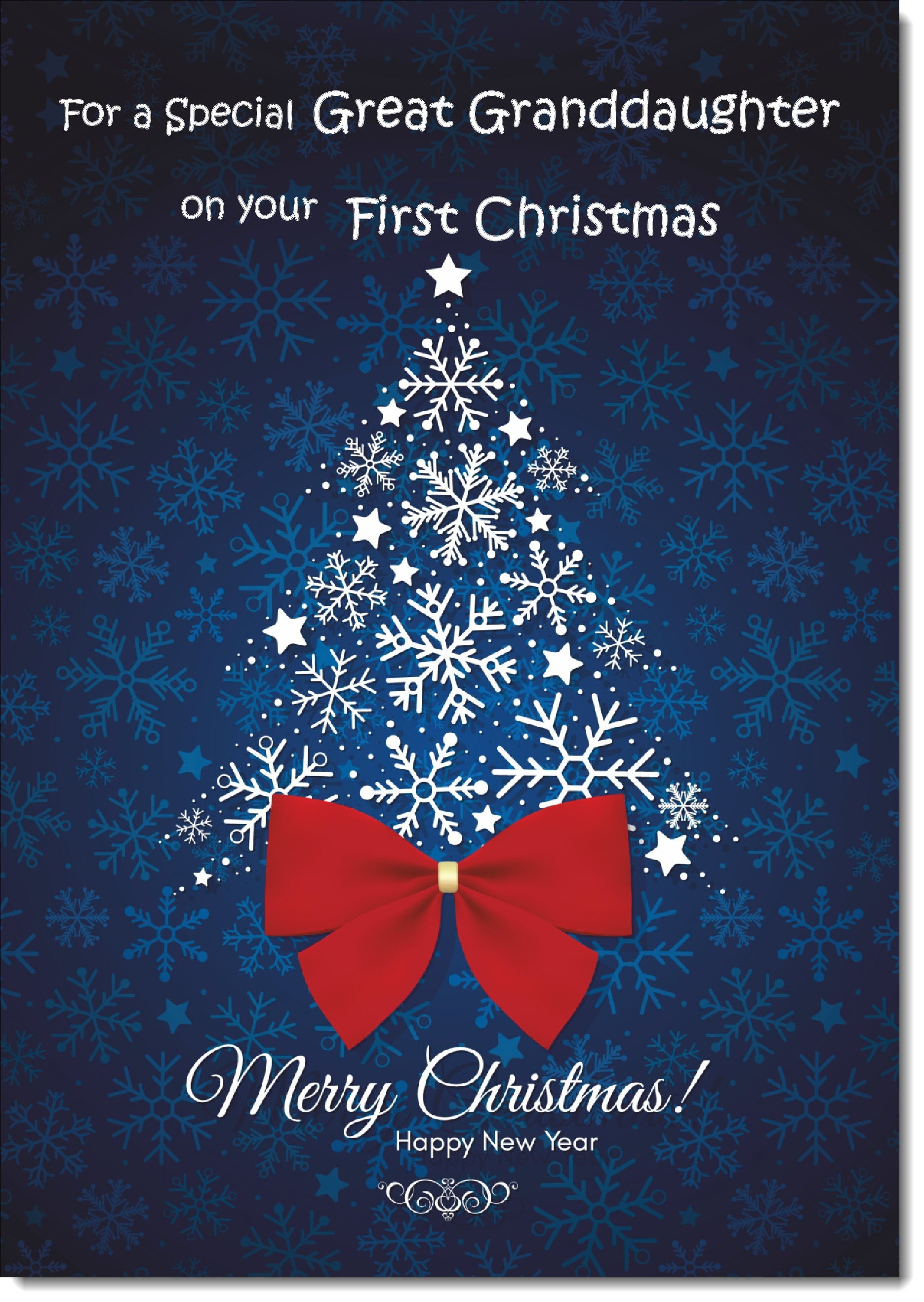 Great Granddaughters 1st Christmas Card Blue Abstract Christmas Tree