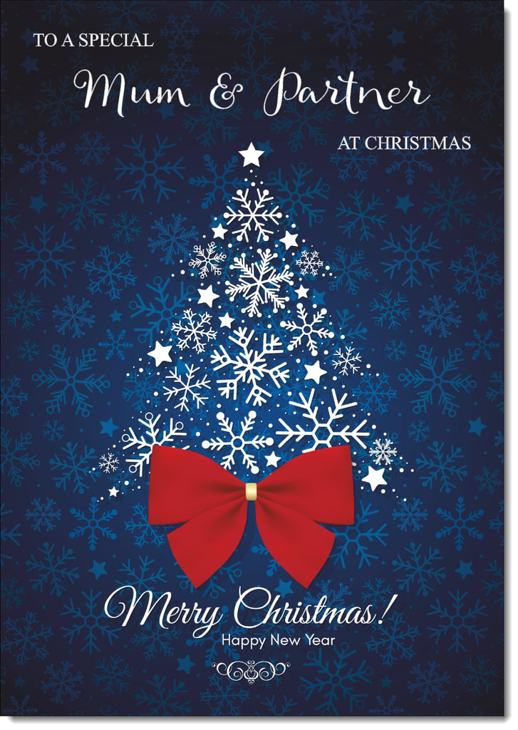 Mum & Partner Christmas Card Blue Abstract Christmas Tree