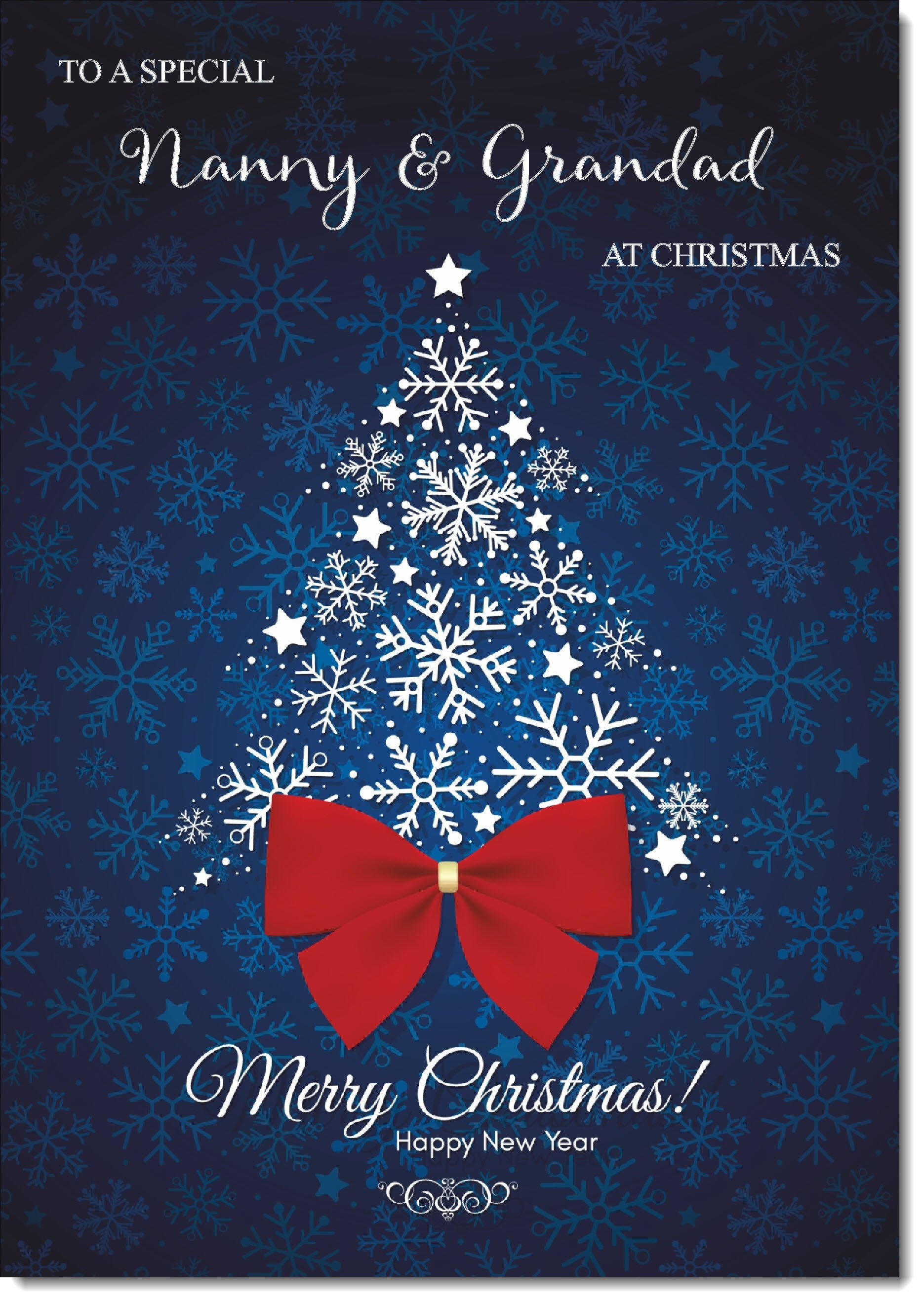 Nanny & Grandad Christmas Card Blue Abstract Christmas Tree