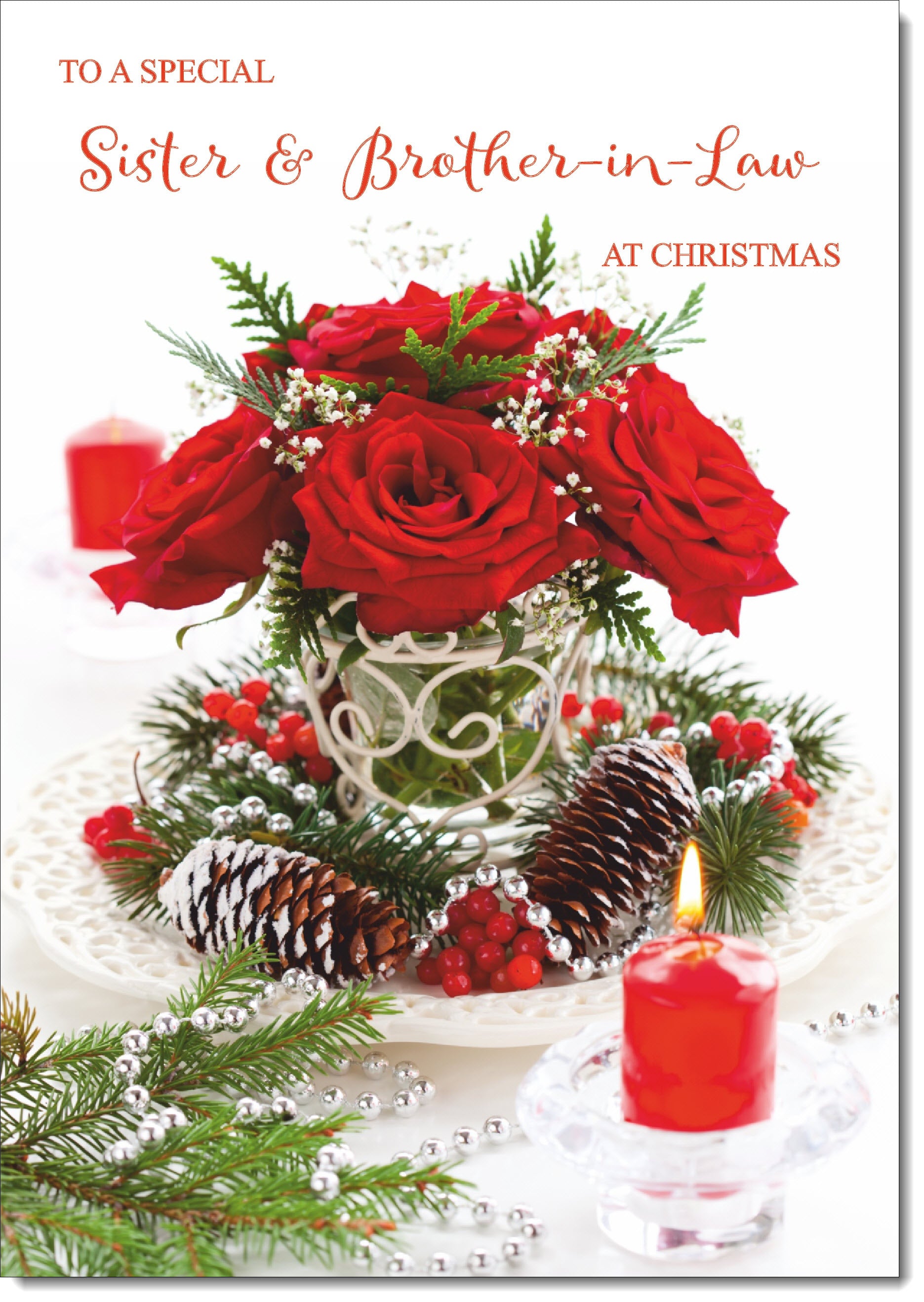 Sister & Brother-in-Law Christmas Card Red Roses Christmas Arrangement