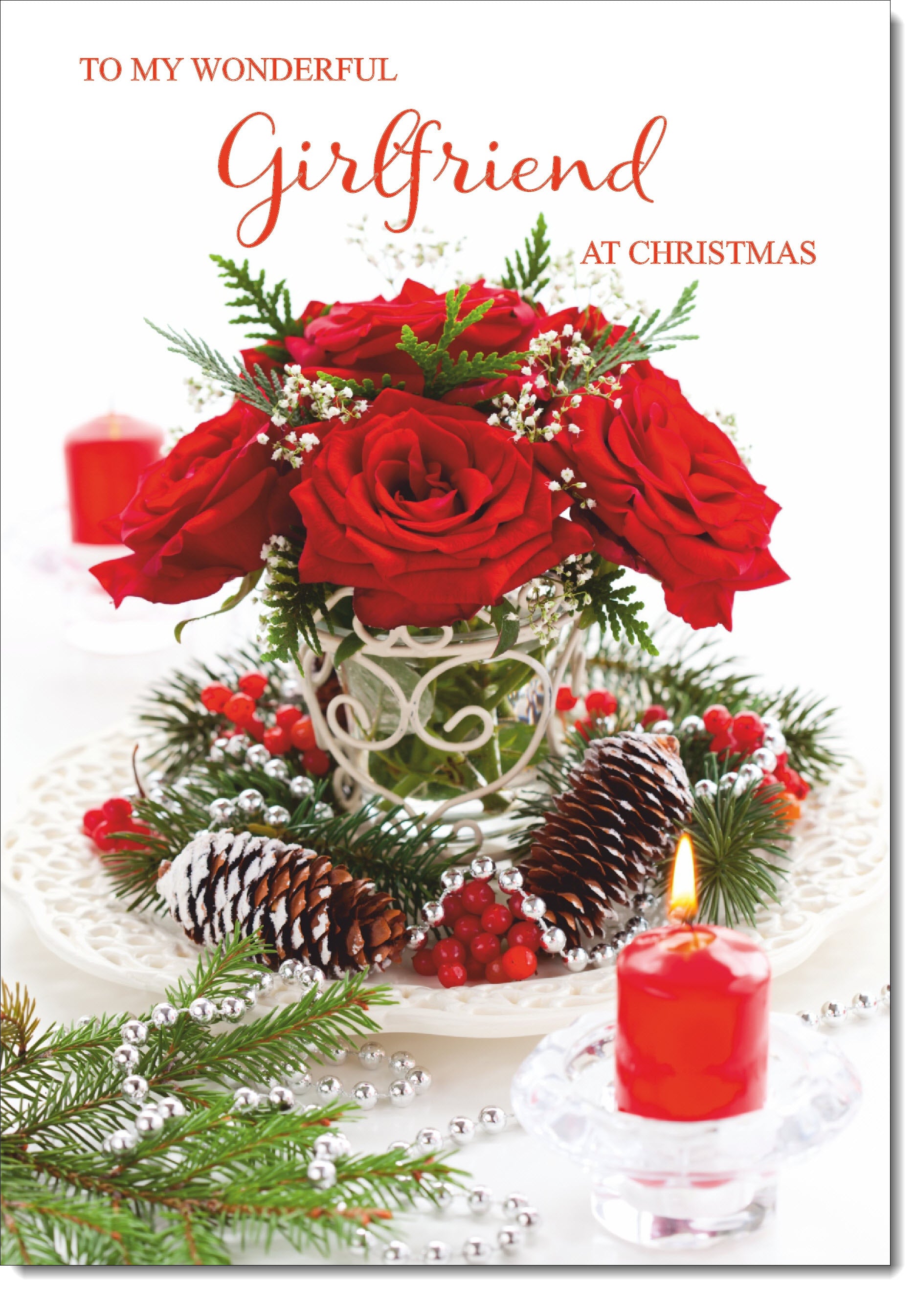 Girlfriend Christmas Card Red Roses Christmas Arrangement