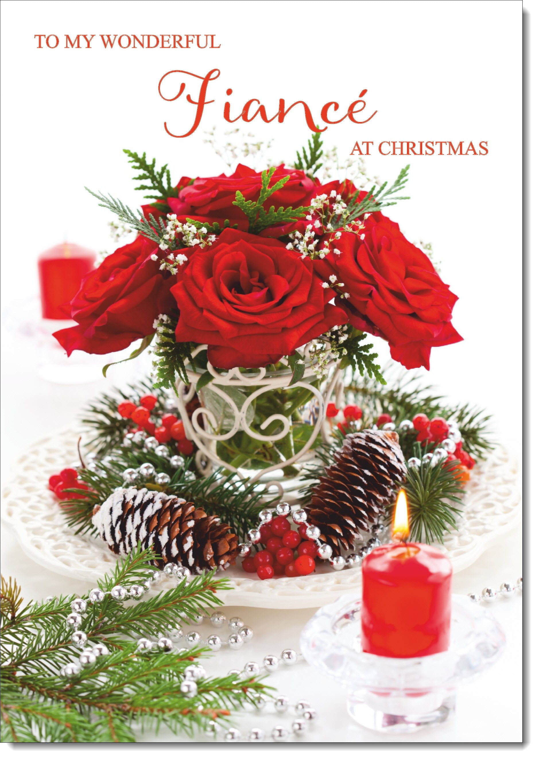 Fiance Christmas Card Red Roses Christmas Arrangement
