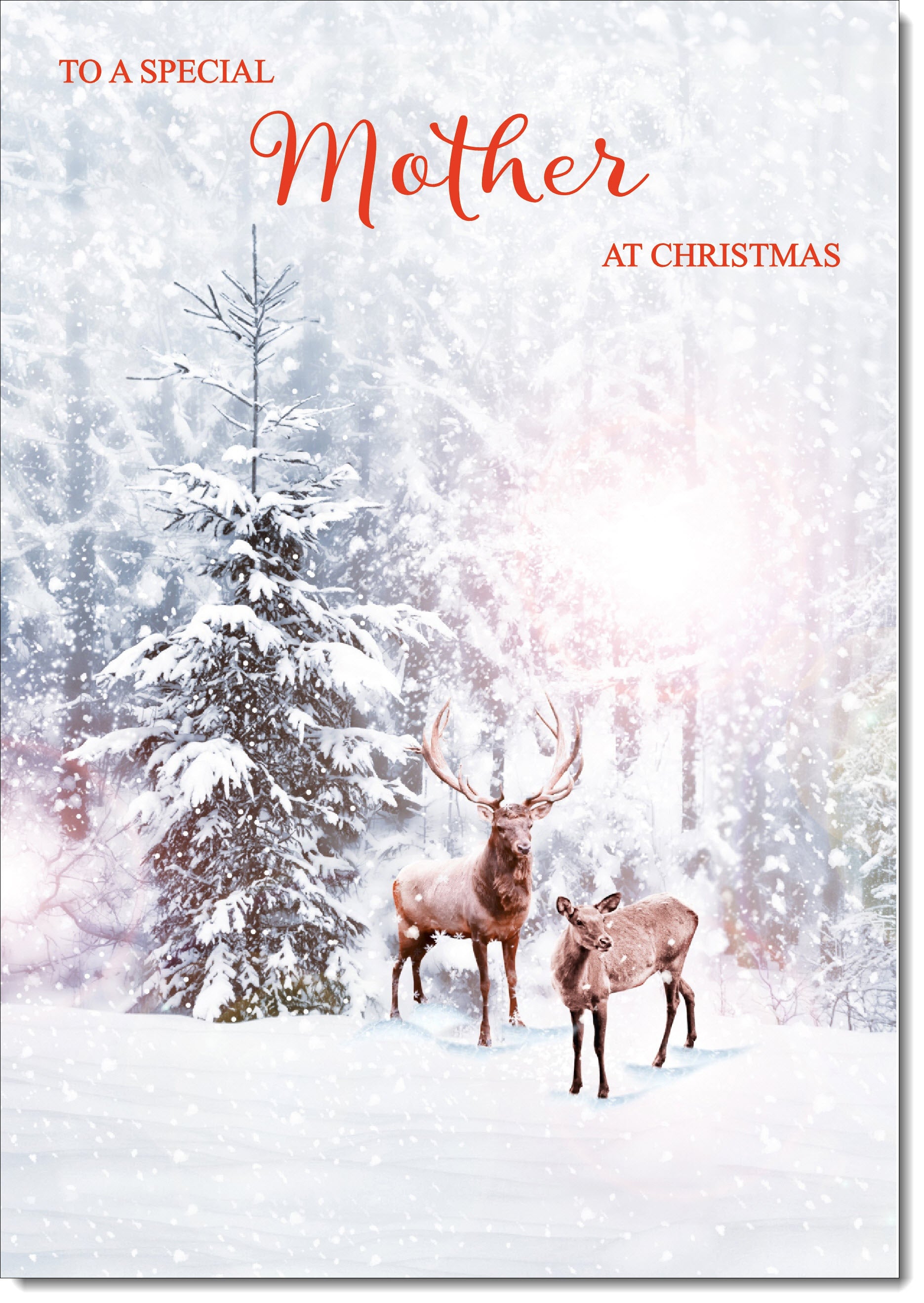 Mother Christmas Card Stag and Doe in Snowy Forest