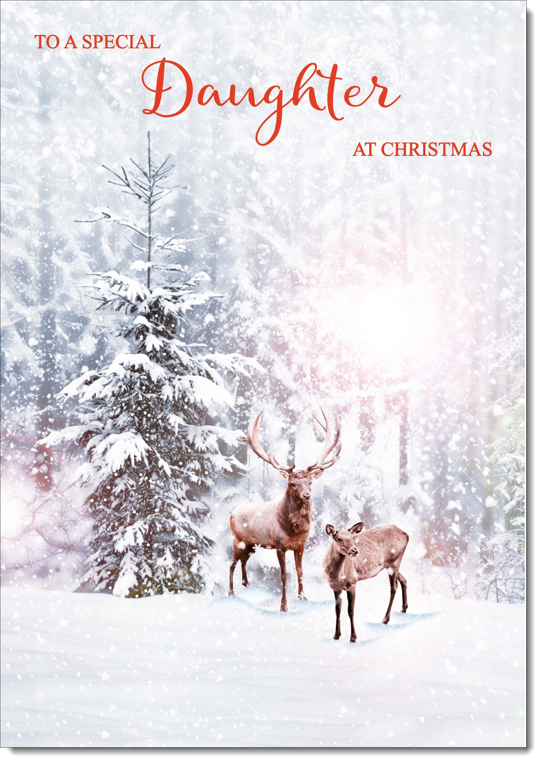 Daughter Christmas Card Stag and Doe in Snowy Forest