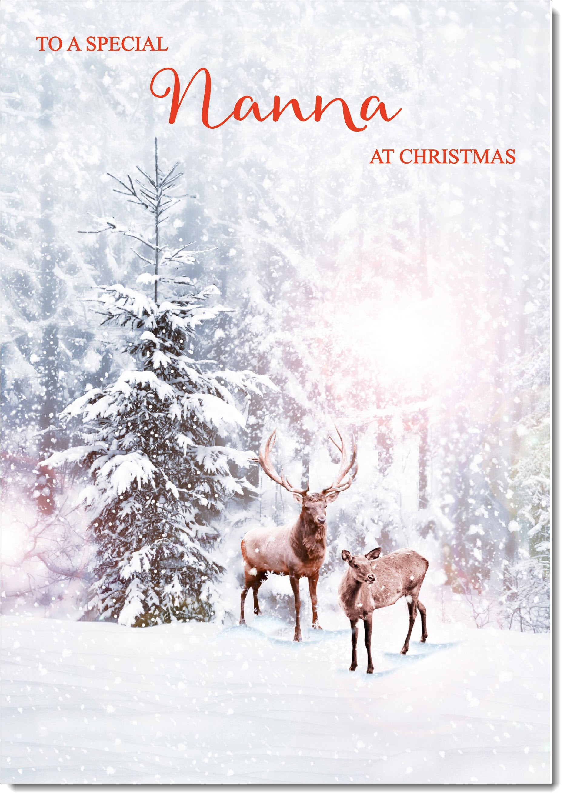 Nanna Christmas Card Stag and Doe in Snowy Forest