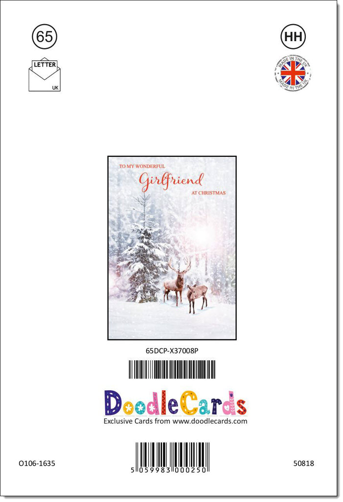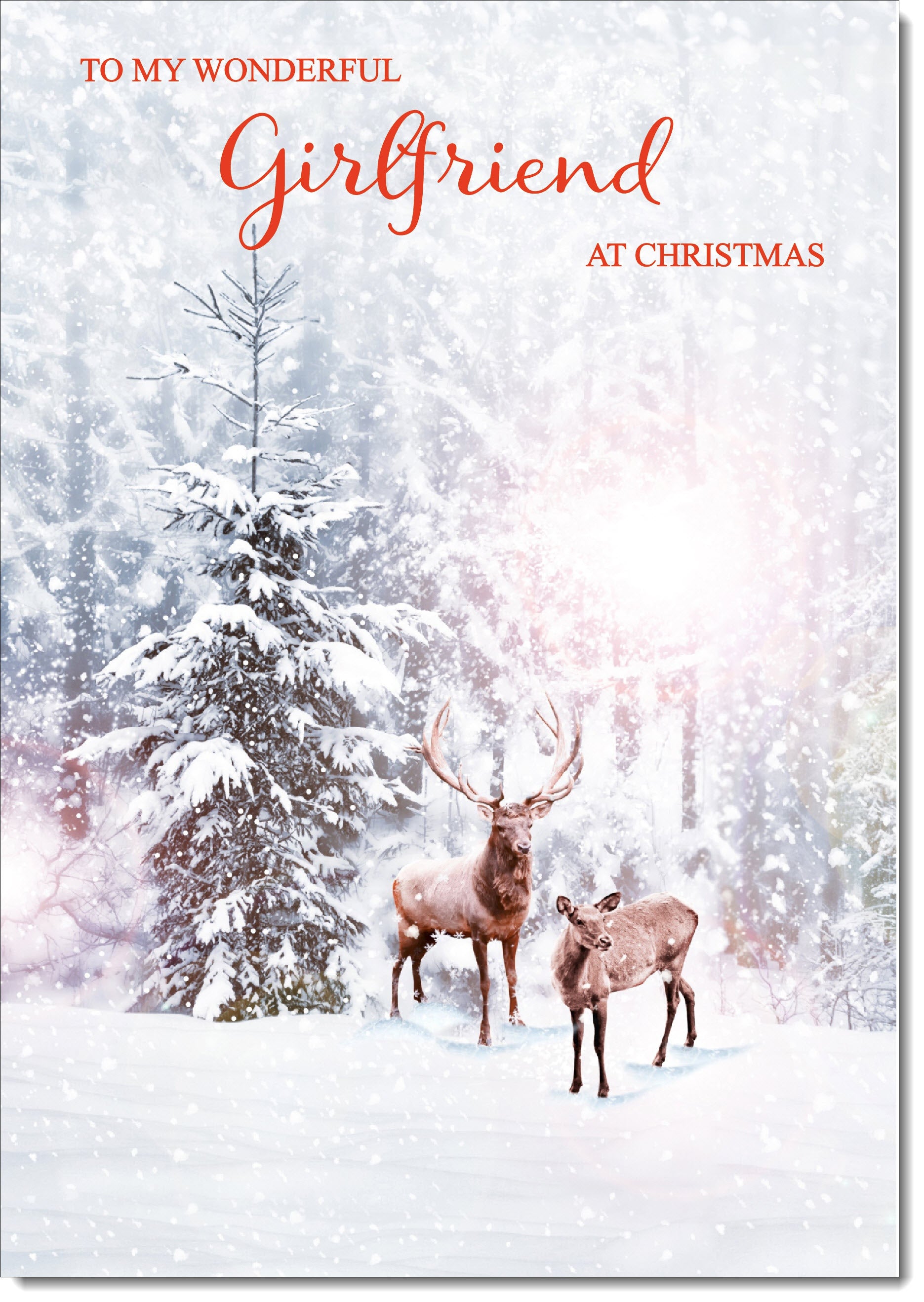 Girlfriend Christmas Card Stag and Doe in Snowy Forest