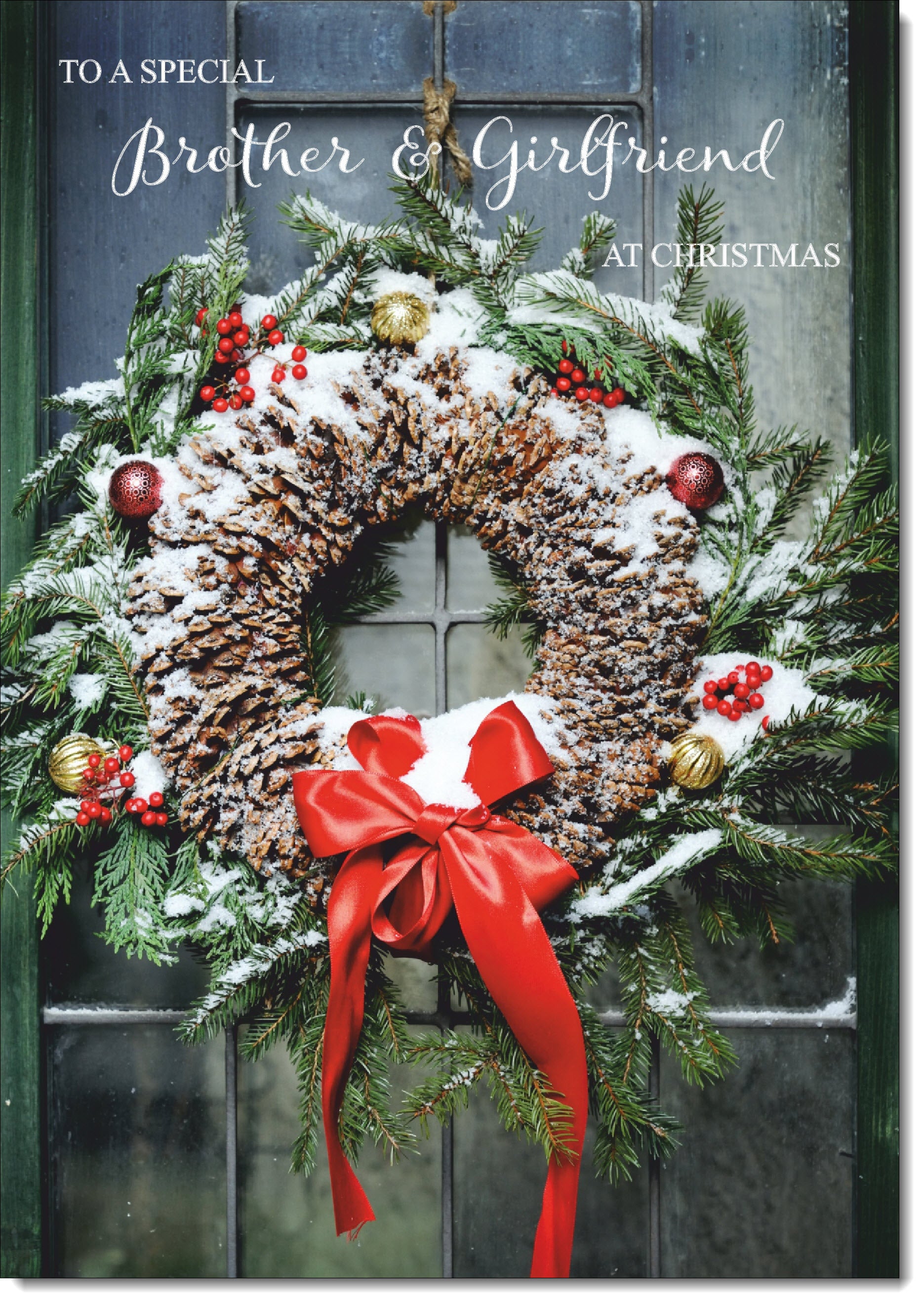 Brother & Girlfriend Christmas Card Christmas Wreath