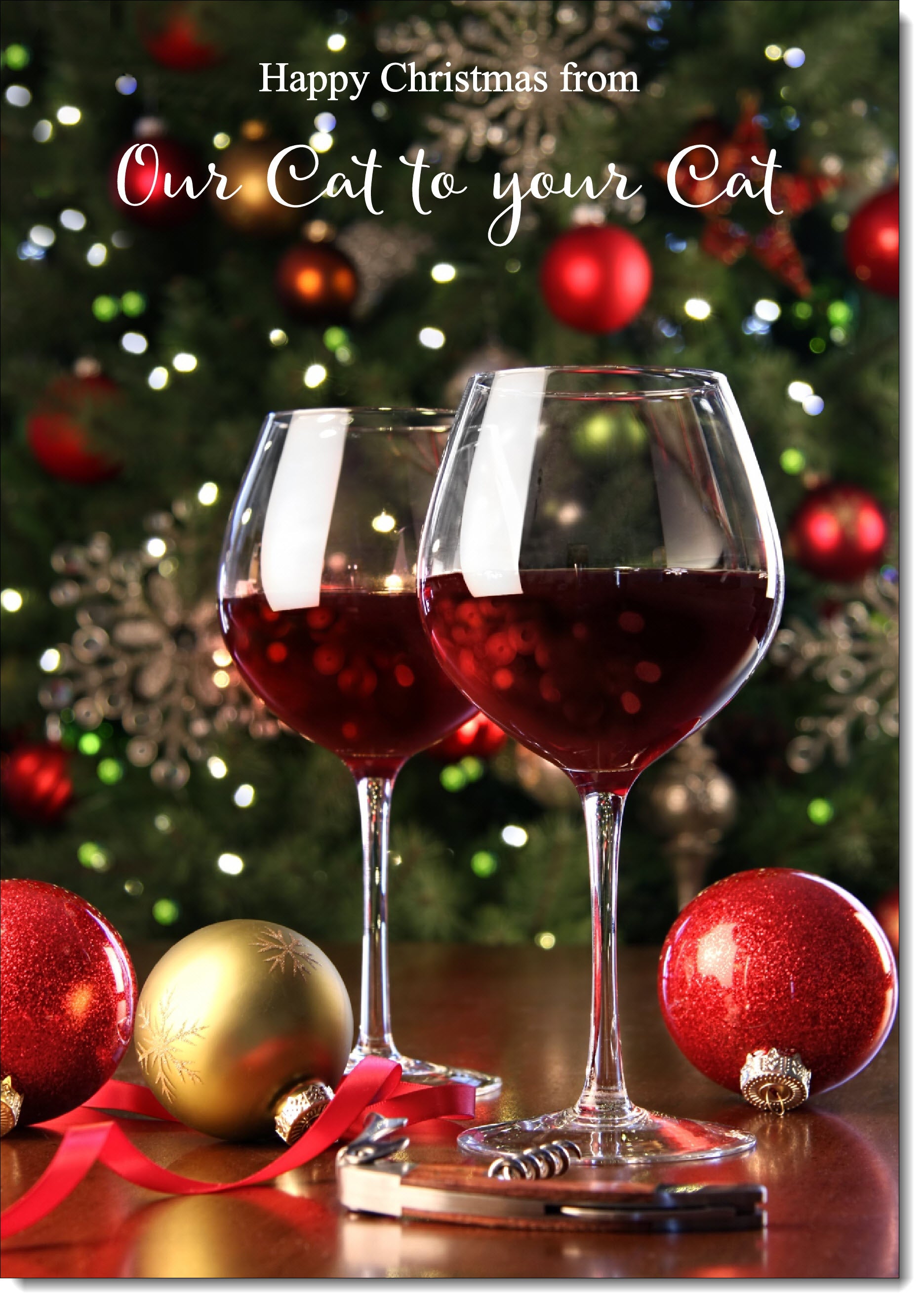Our Cat To Your Cat Christmas Card Red Wine Glasses