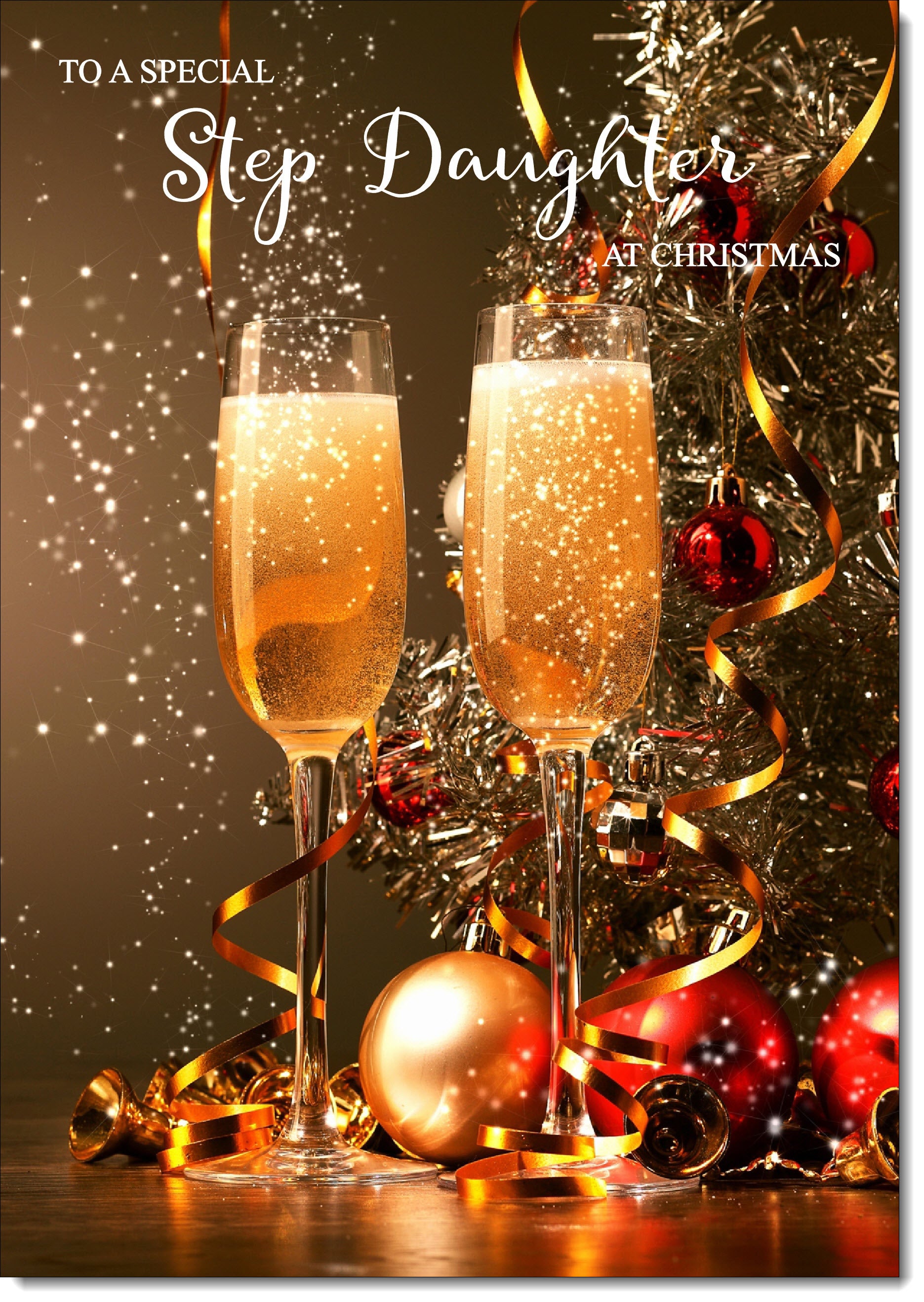 Stepdaughter Christmas Card Two Champagne Glasses