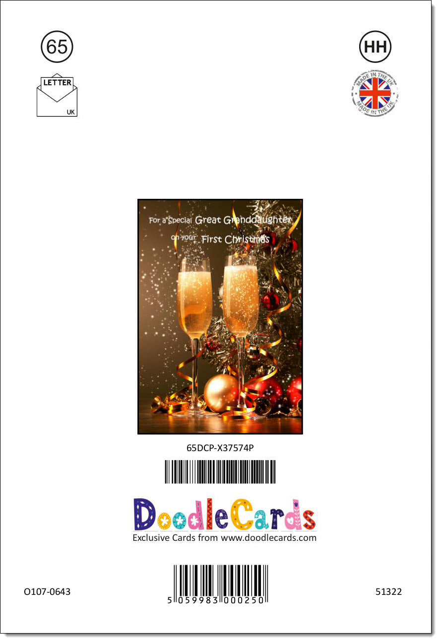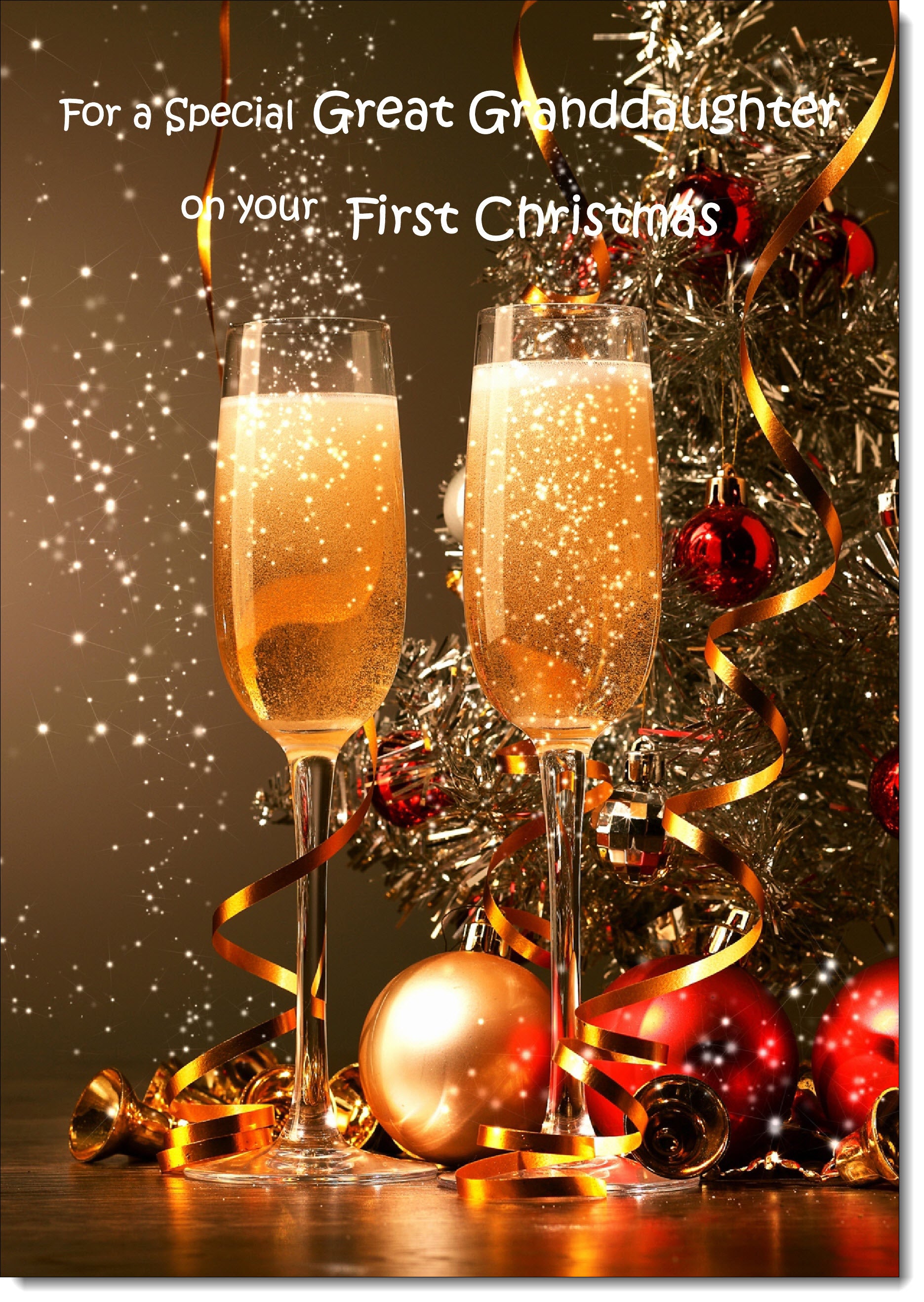 Great Granddaughters 1st Christmas Card Two Champagne Glasses