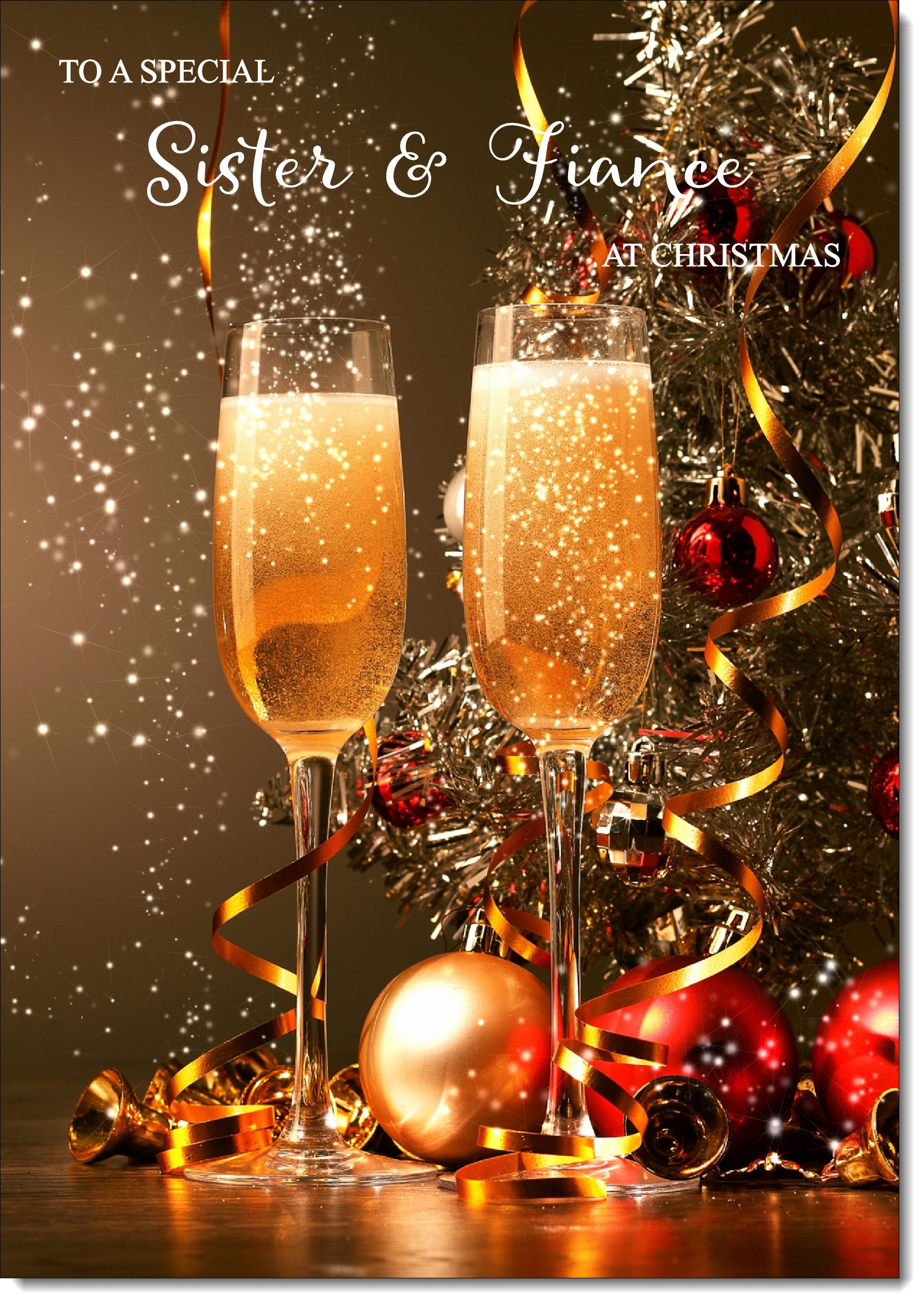 Sister & Fiance Christmas Card Two Champagne Glasses