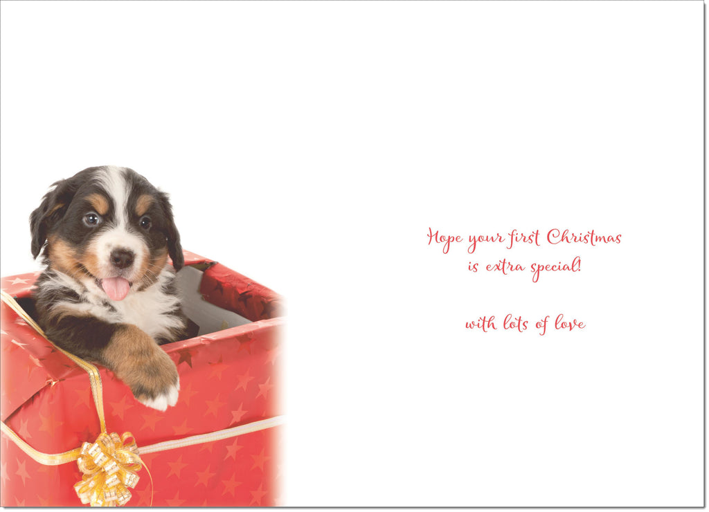 Great Granddaughters 1st Christmas Card Bernese Mountain Puppy in Parcel