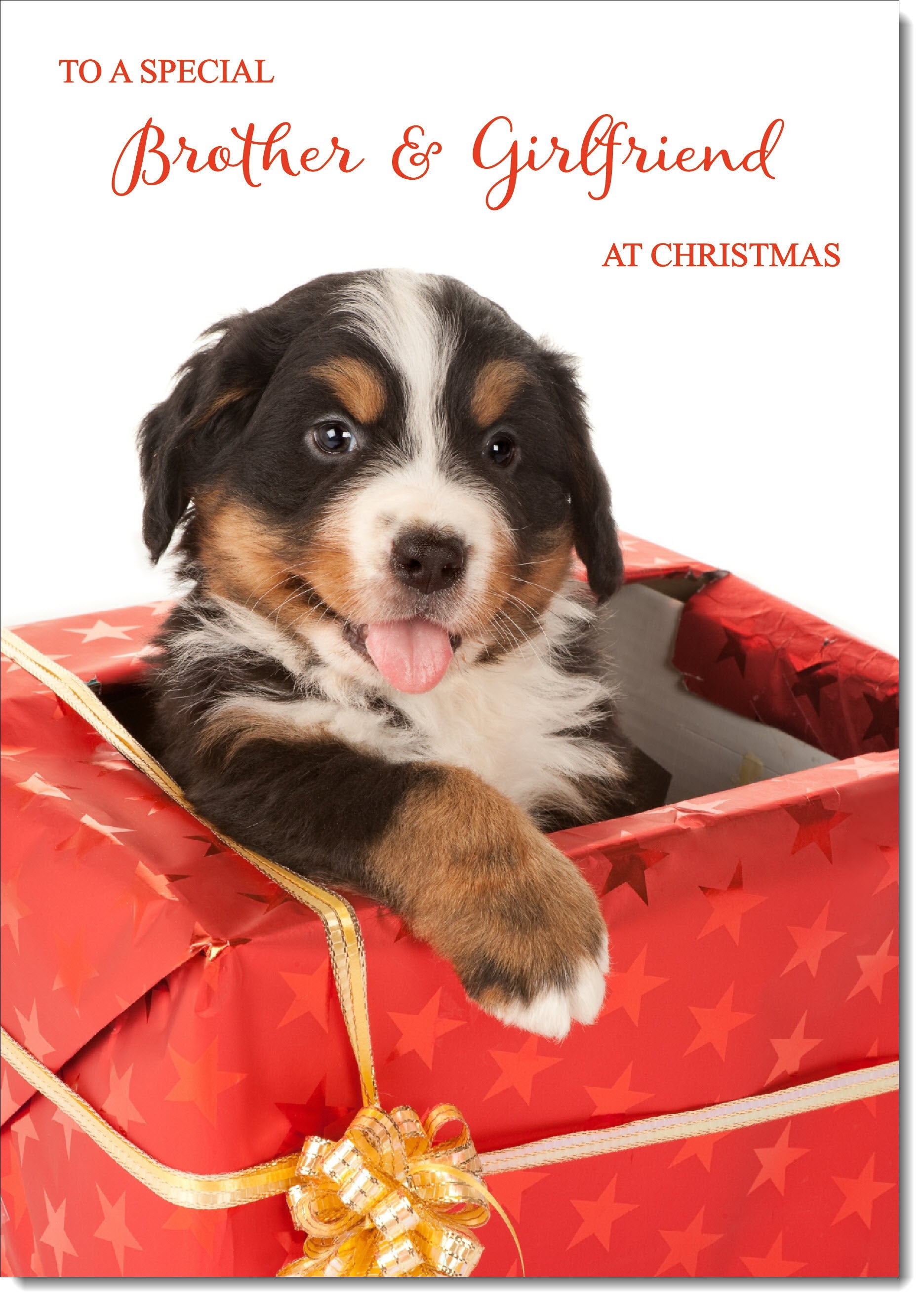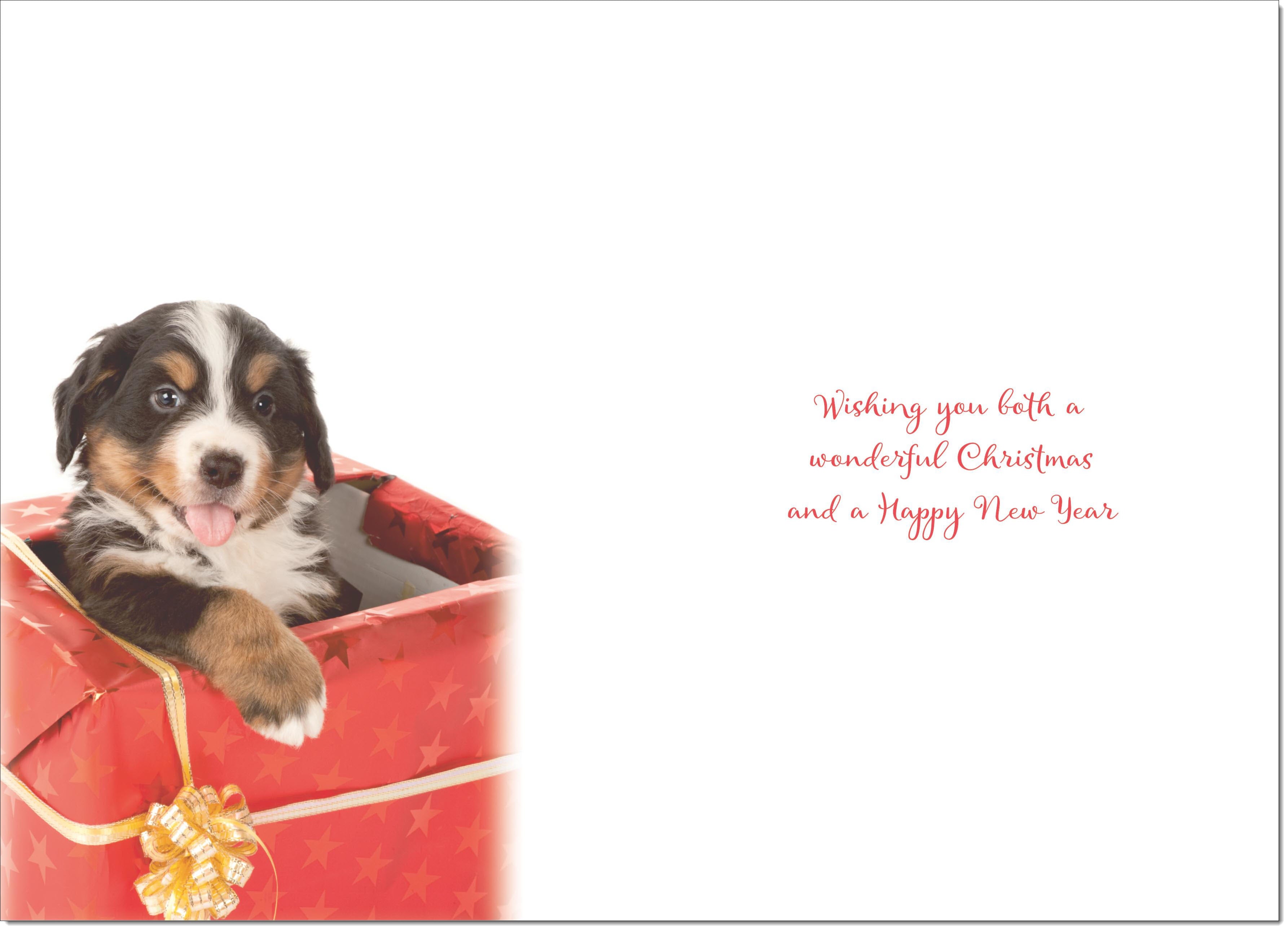 Brother & Girlfriend Christmas Card Bernese Mountain Puppy in Parcel