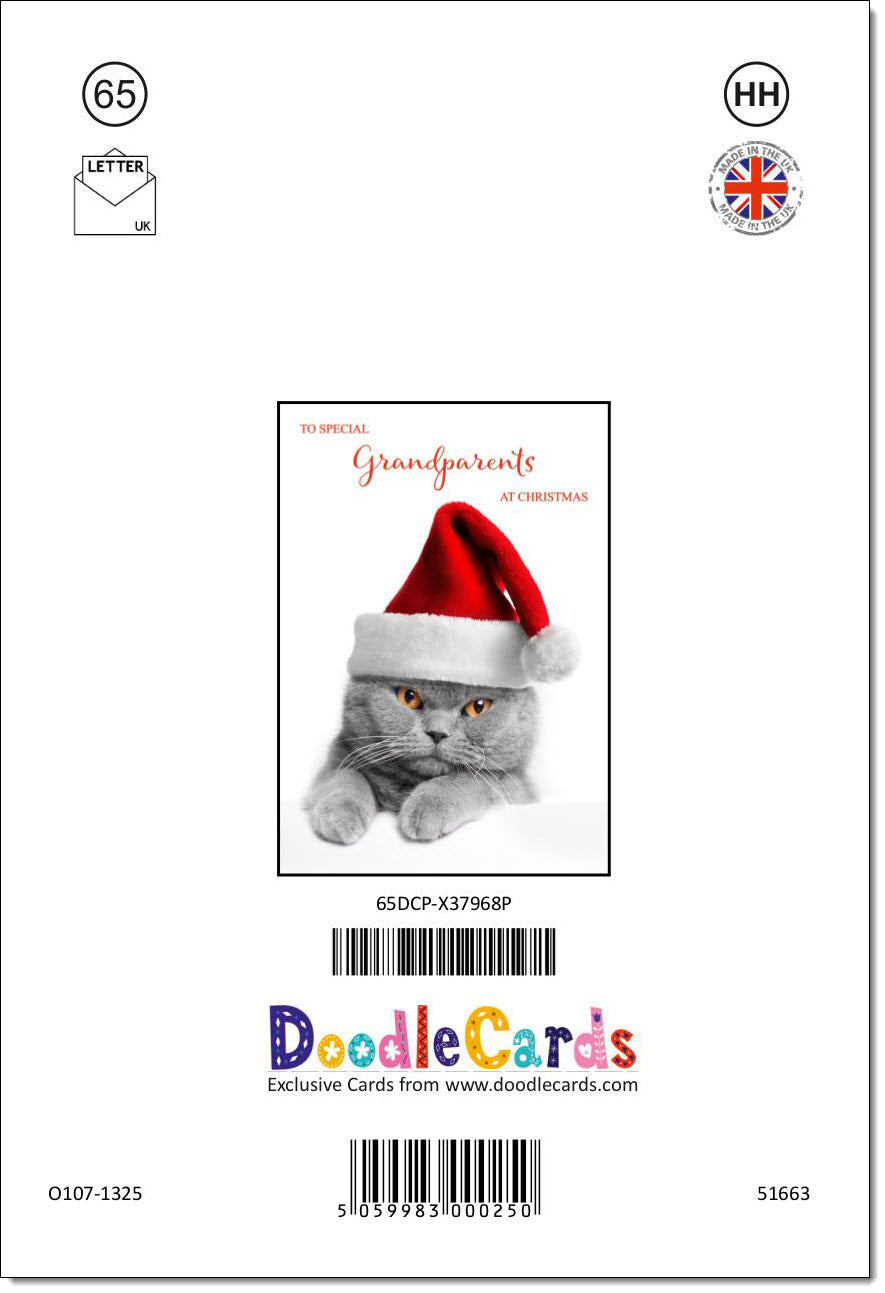 Grandparents Christmas Card Grey Cat with Santa Hat