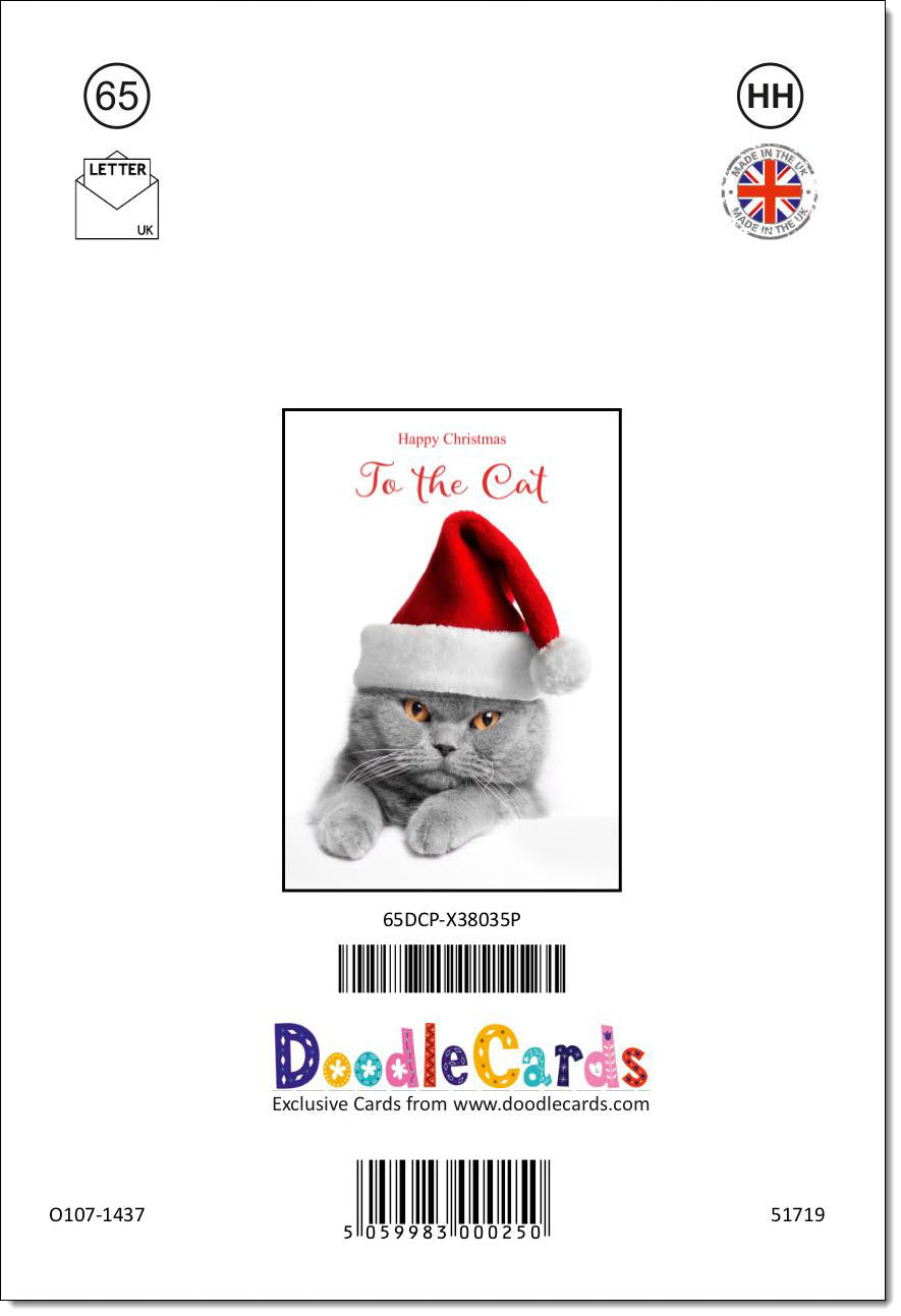To The Cat Christmas Card Grey Cat with Santa Hat
