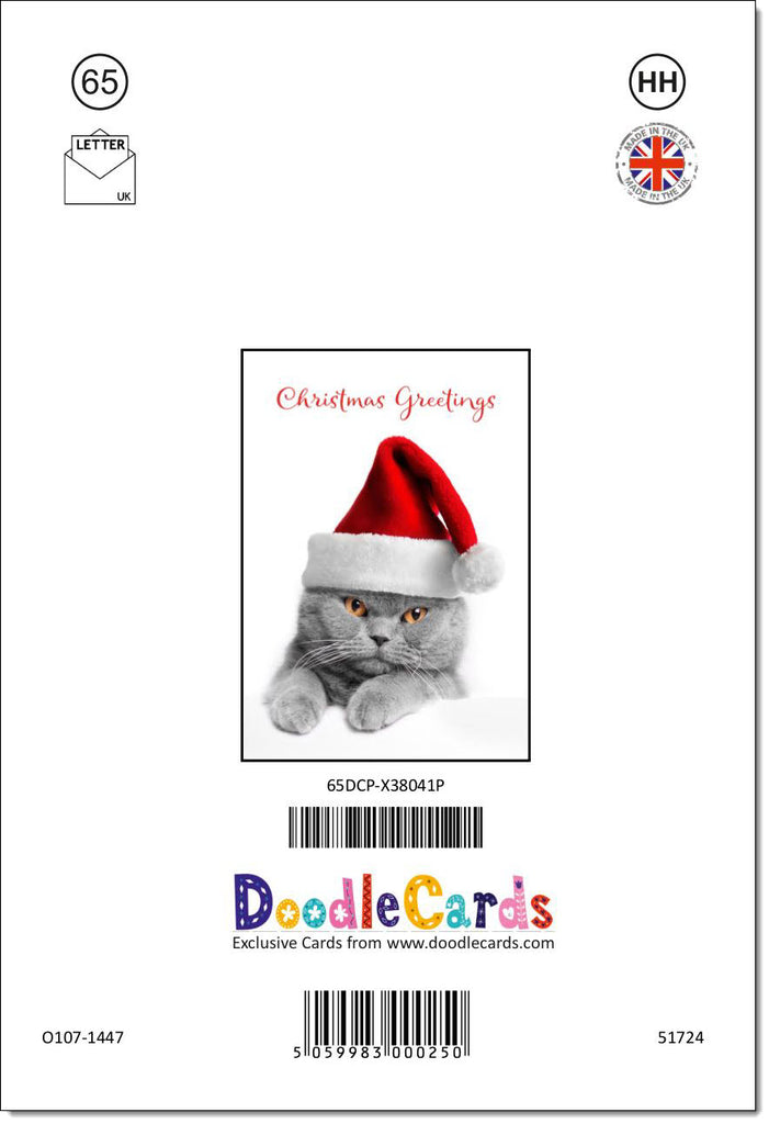 Christmas Greetings Christmas Card Grey Cat with Santa Hat
