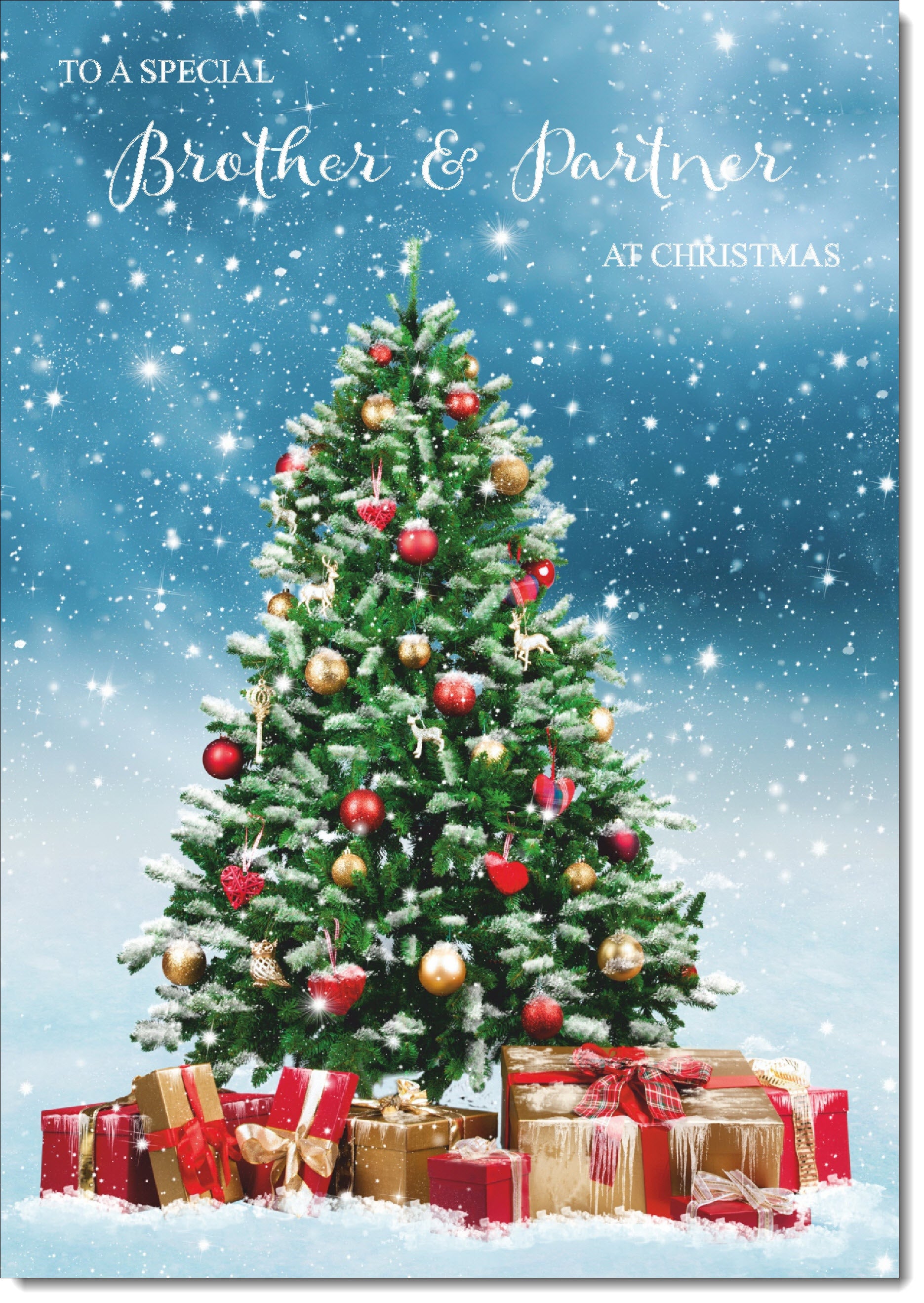 Brother & Partner Christmas Card Christmas Tree and Parcels