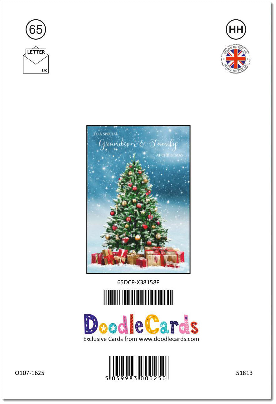 Grandson & Family Christmas Card Christmas Tree and Parcels