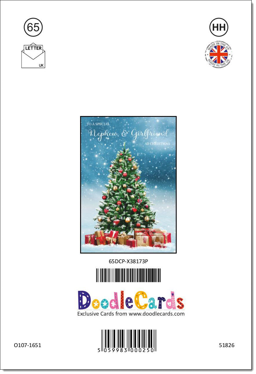 Nephew & Girlfriend Christmas Card Christmas Tree and Parcels