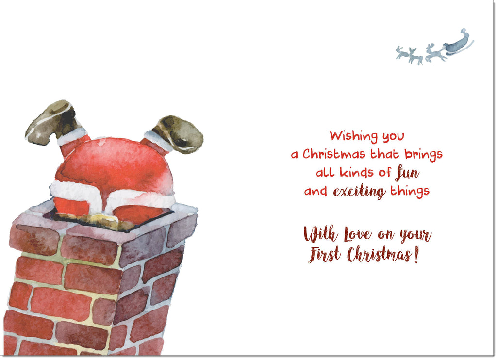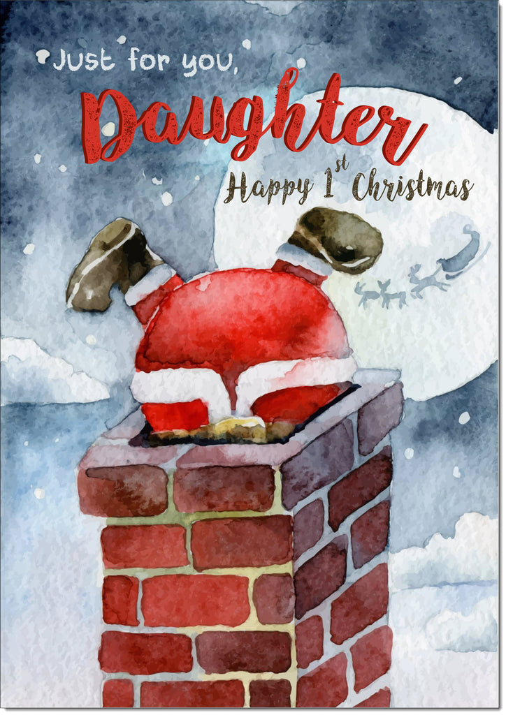 Daughter 1st Christmas Card Santa Stuck in the Chimney