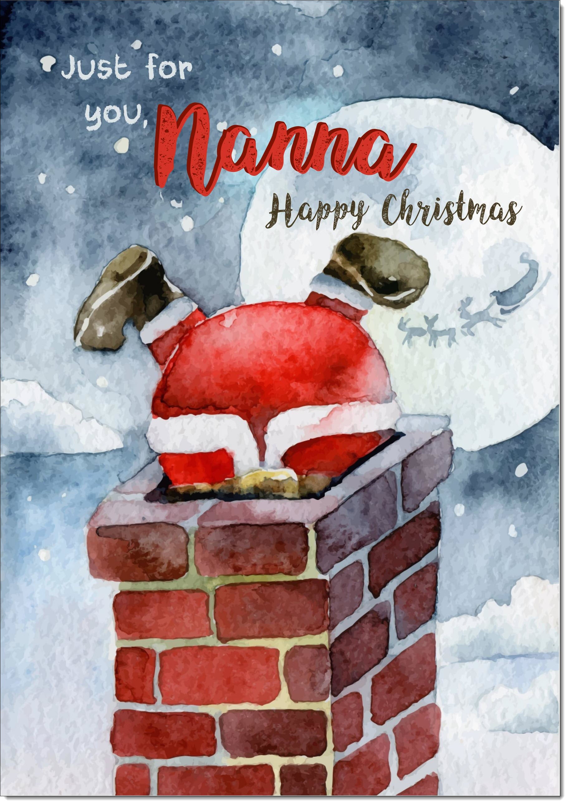 Nanna Christmas Card Santa Stuck in the Chimney