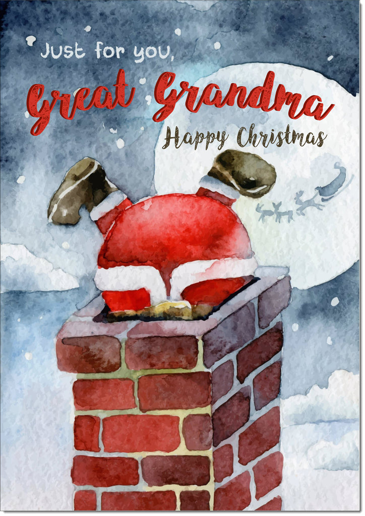Great Grandma Christmas Card Santa Stuck in the Chimney