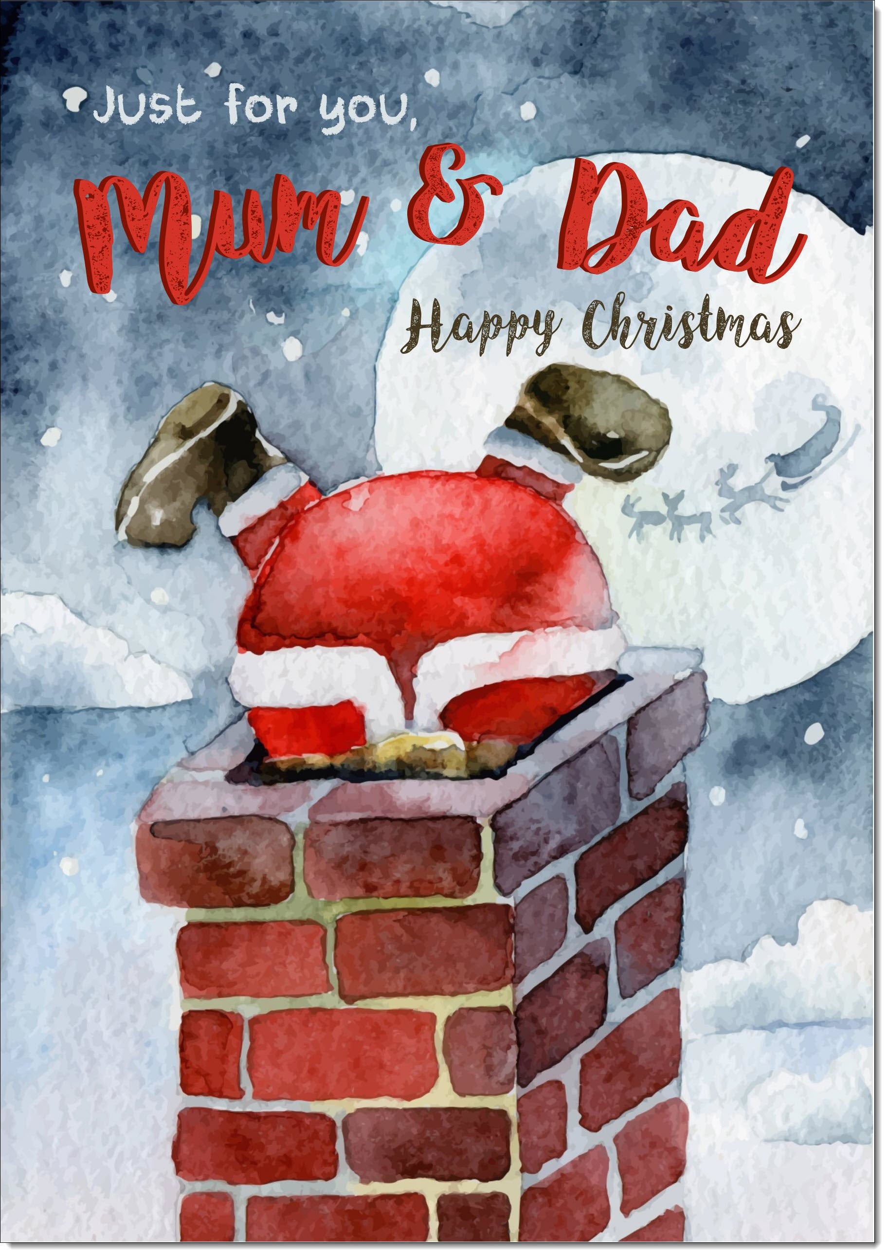 Mum & Dad Christmas Card Santa Stuck in the Chimney