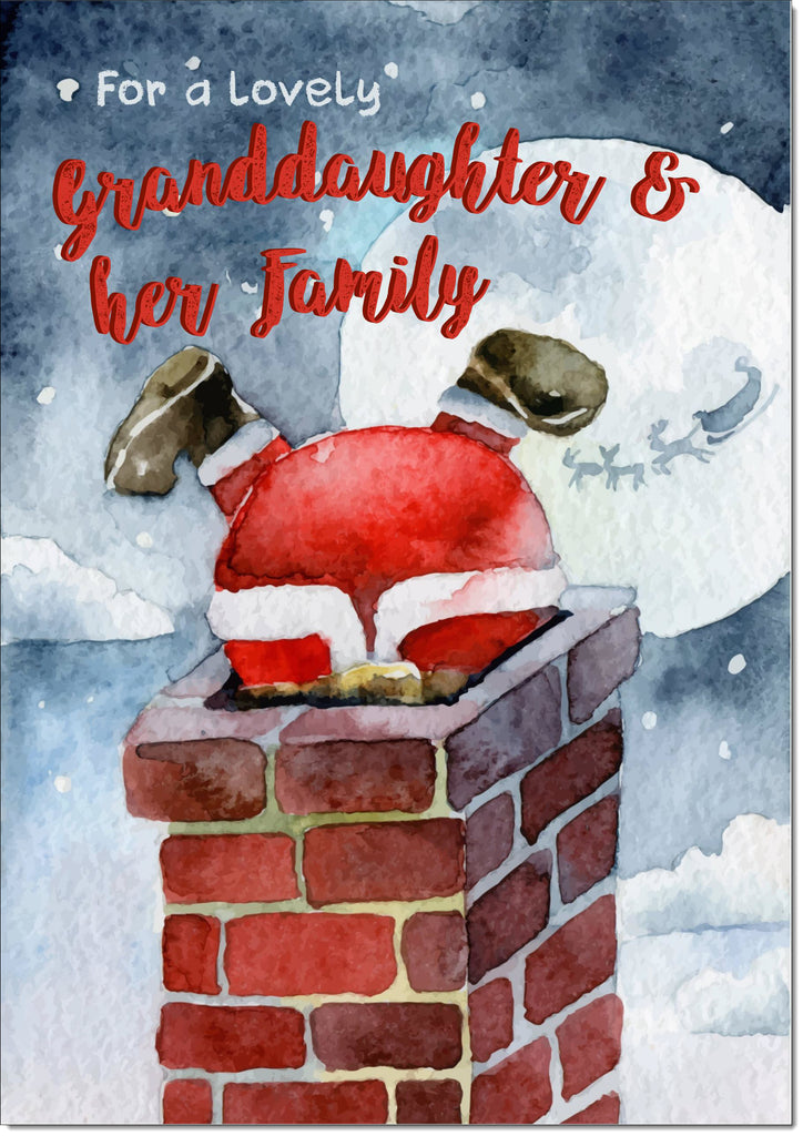 Granddaughter & Family Christmas Card Santa Stuck in the Chimney