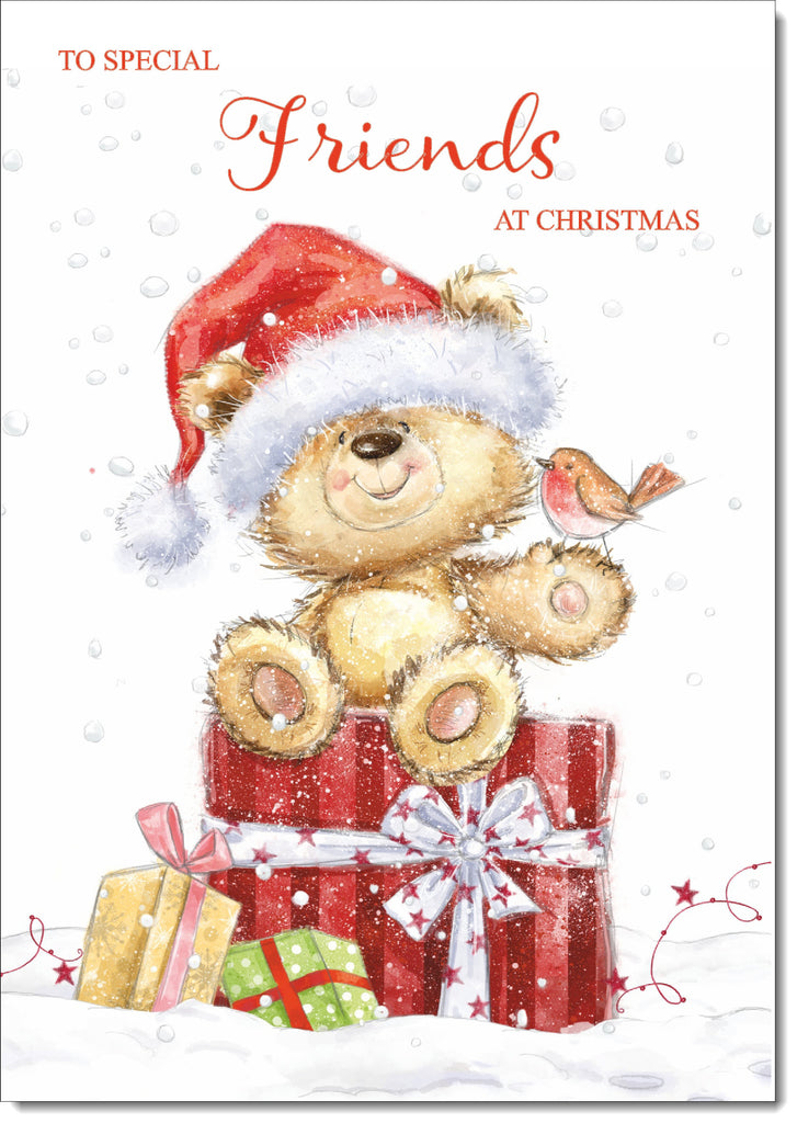 Friends Christmas Card Cute Bear on Parcel