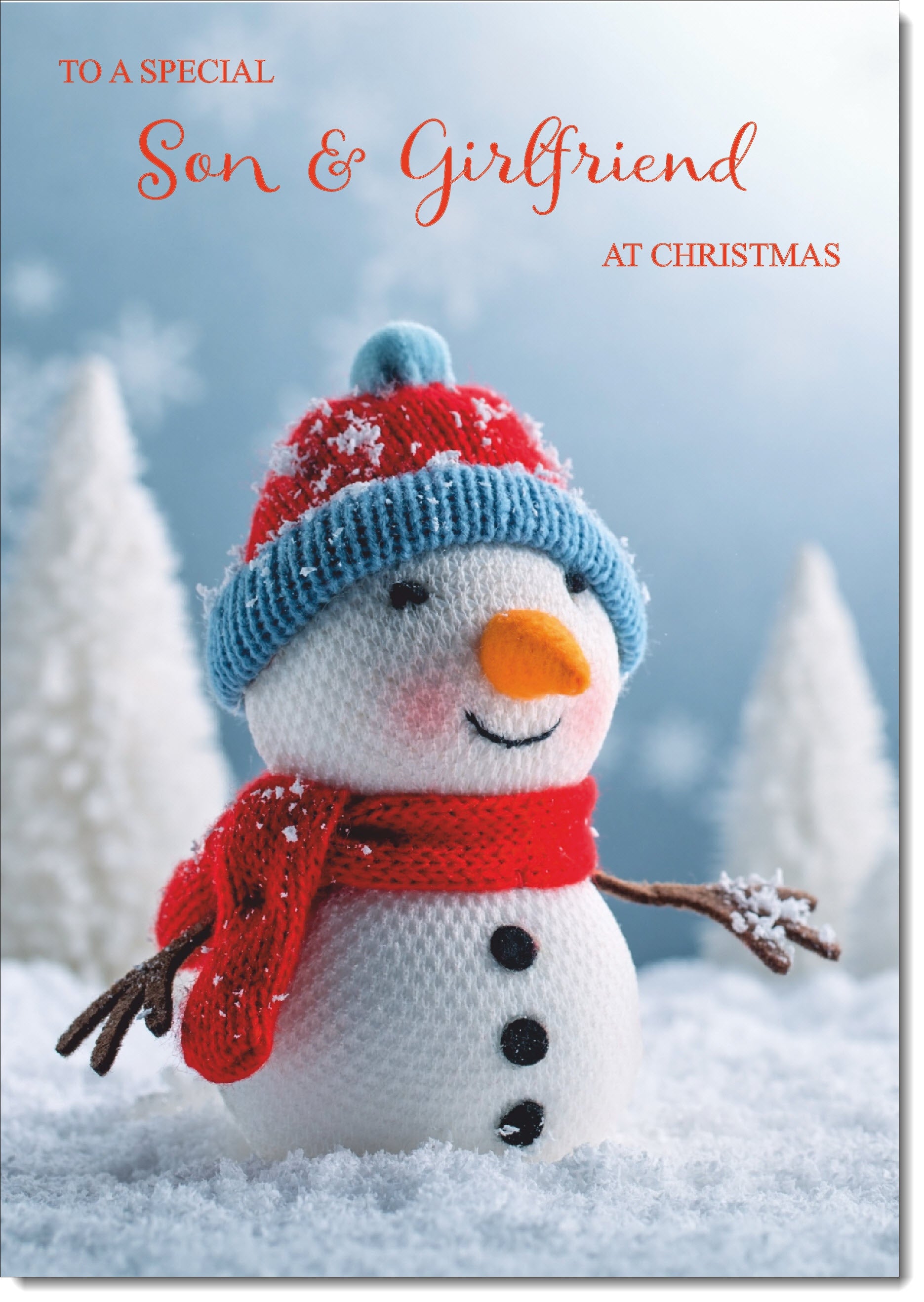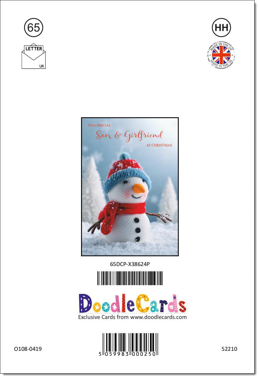 Son & Girlfriend Christmas Card Knitted Snowman