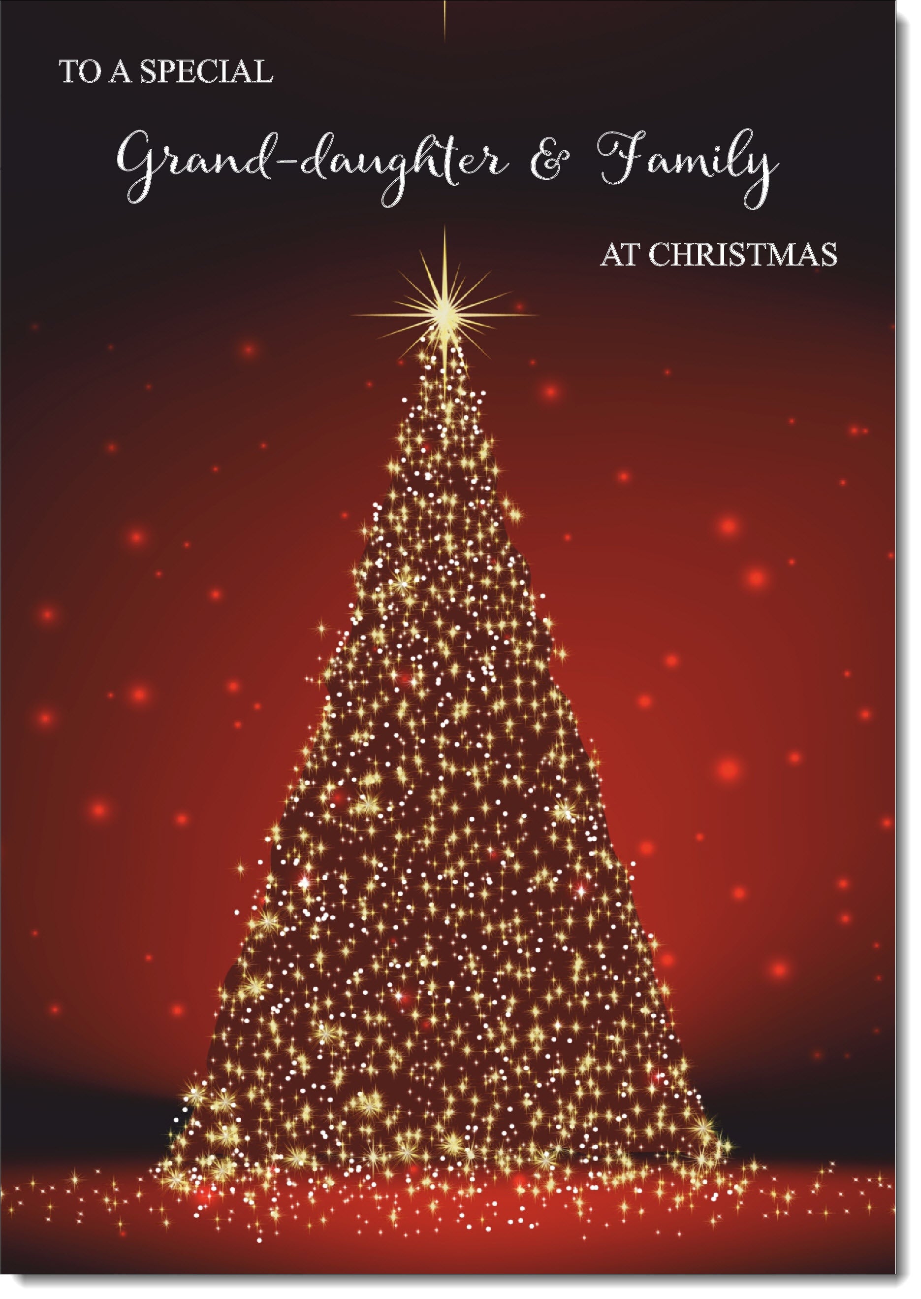 Granddaughter & Family Christmas Card Red Christmas Tree