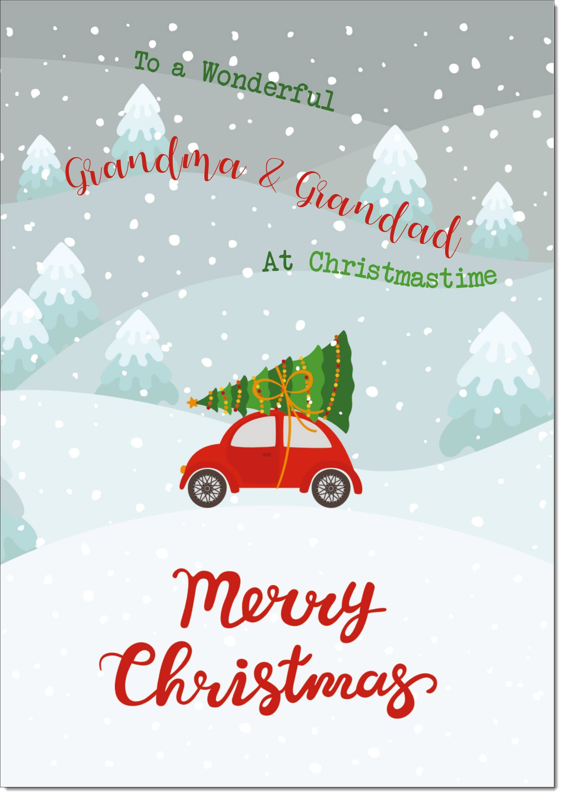 Grandma & Grandad Christmas Card Christmas Tree on Car