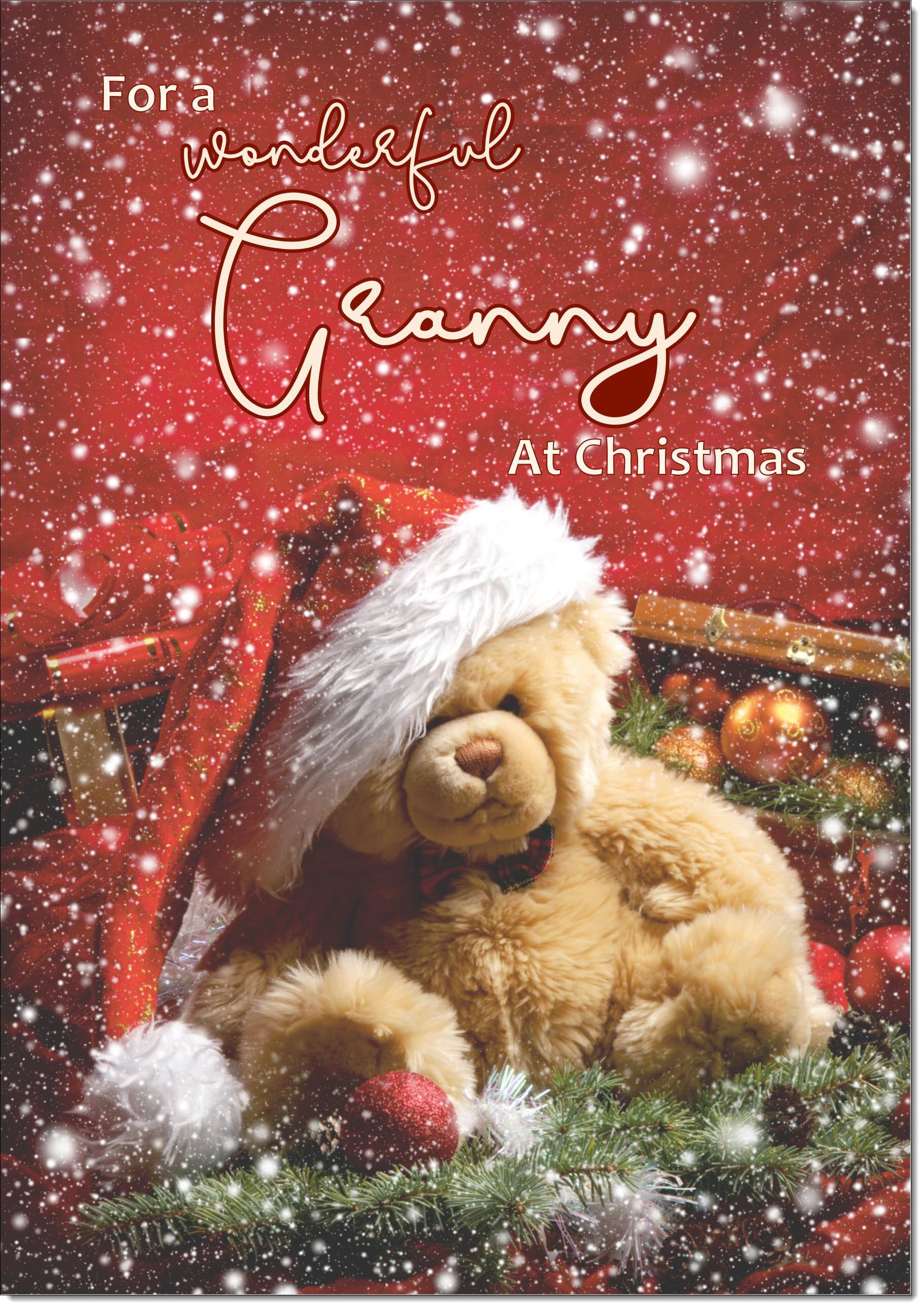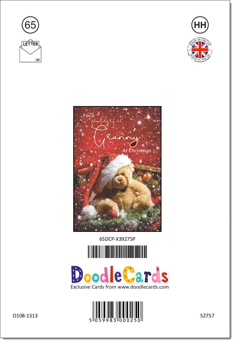 Granny Christmas Card Teddy Bear in Santa Hat