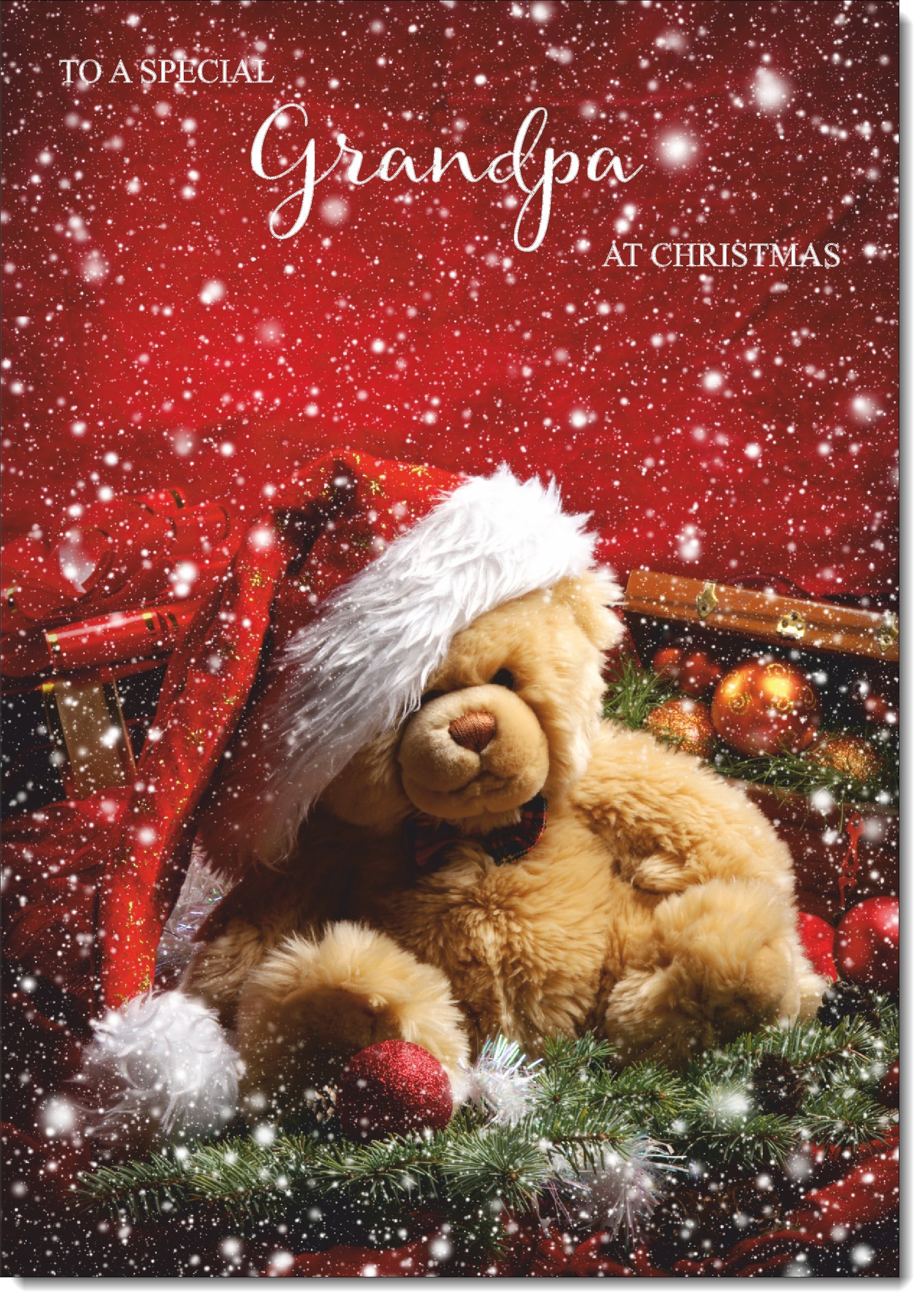 Grandpa Christmas Card Teddy Bear in Santa Hat